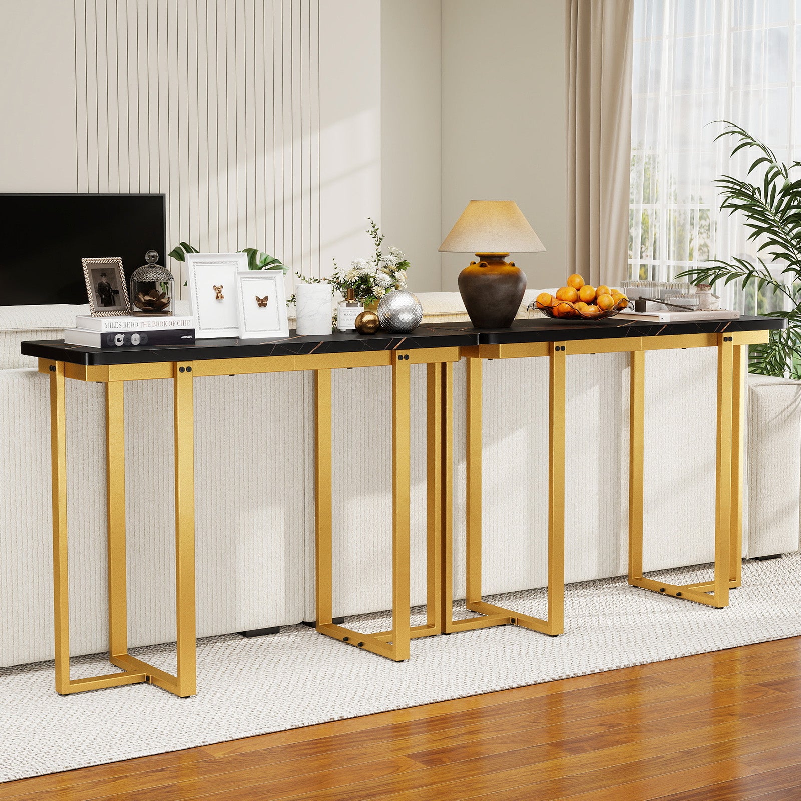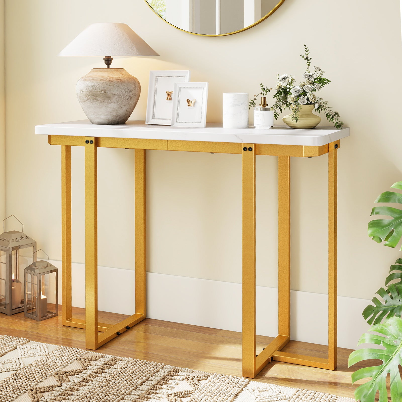 ● Modern Aesthetics: Showcasing exquisite black/white faux marble top the modern console table adds an elegant touch to any room. Plus gold finished frame it is an eye-catching addition to your home furnishings.