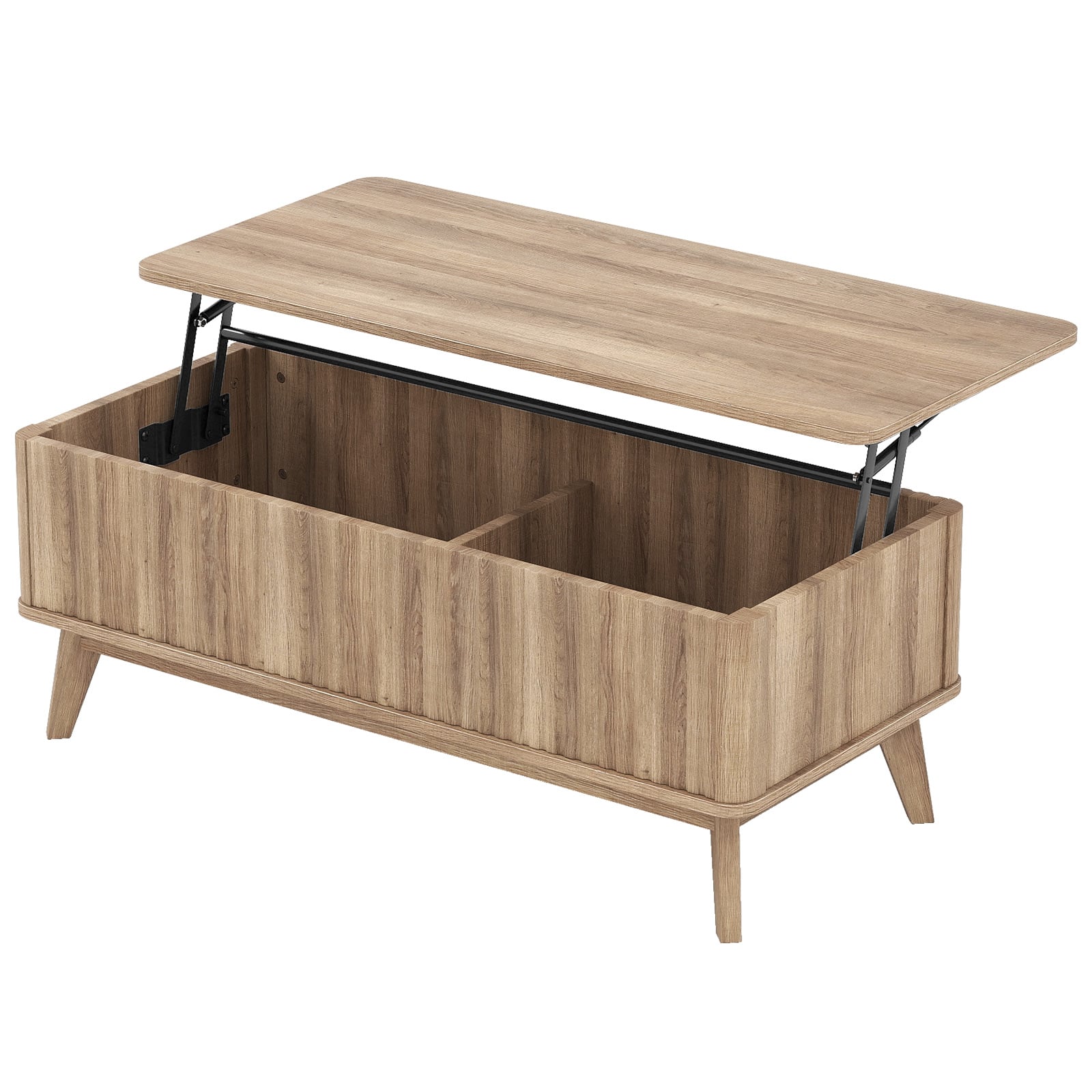 43.5" Rectangle Wooden Fluted Lift Top Coffee Table-Walnut