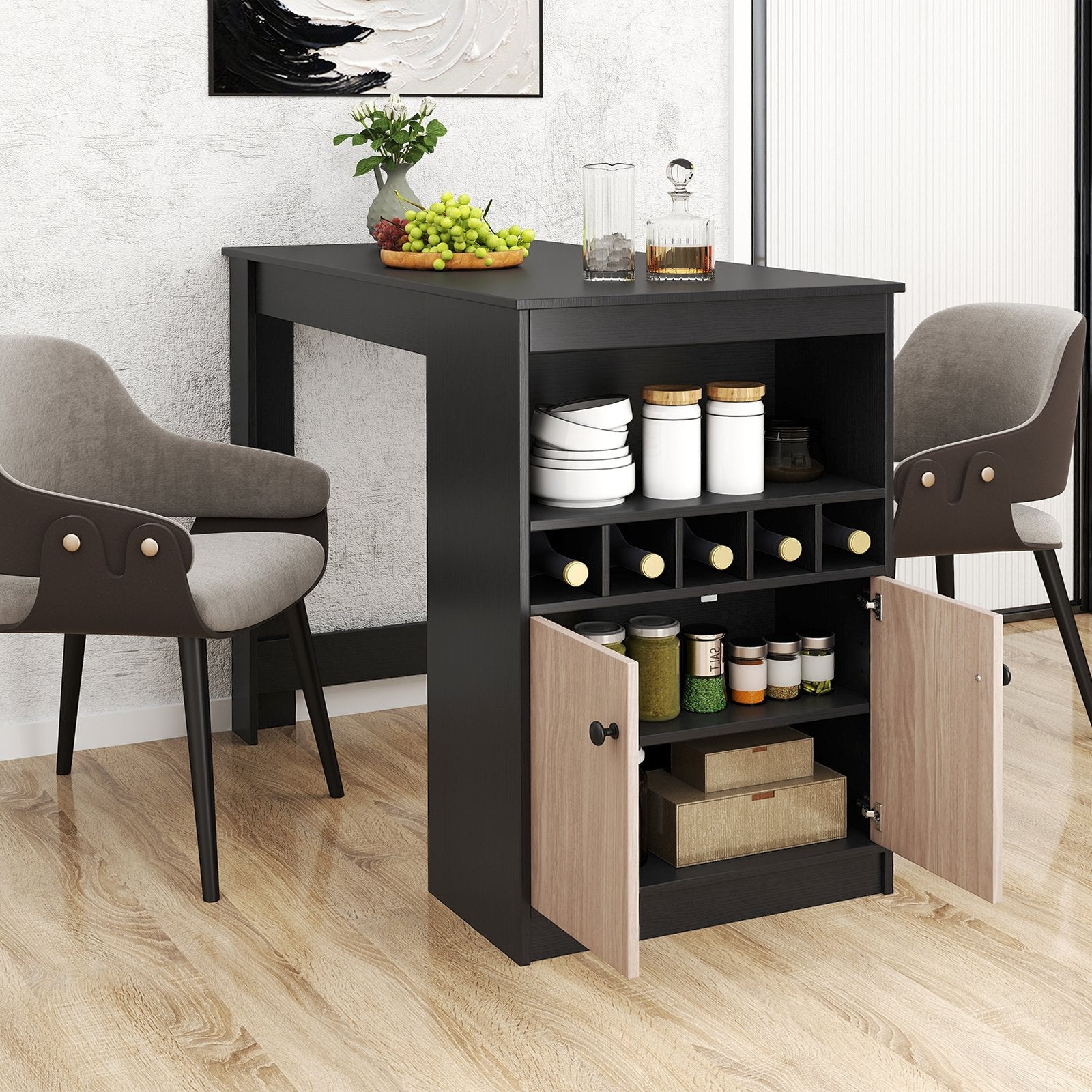 48 Inch Bar Table with Storage Cabinet and Wine Rack-Black