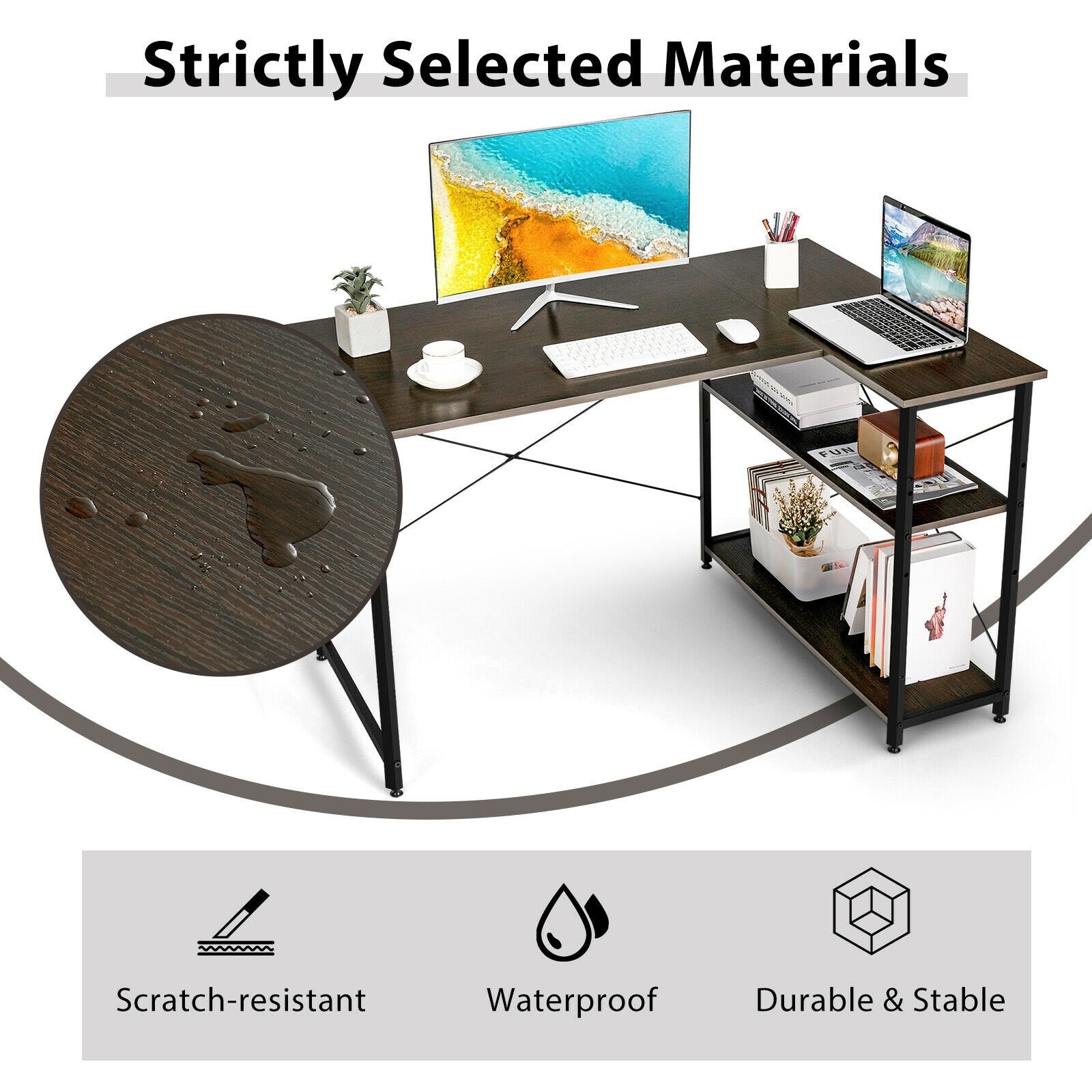 48 Inch Reversible L Shaped Computer Desk with Adjustable Shelf-Brown