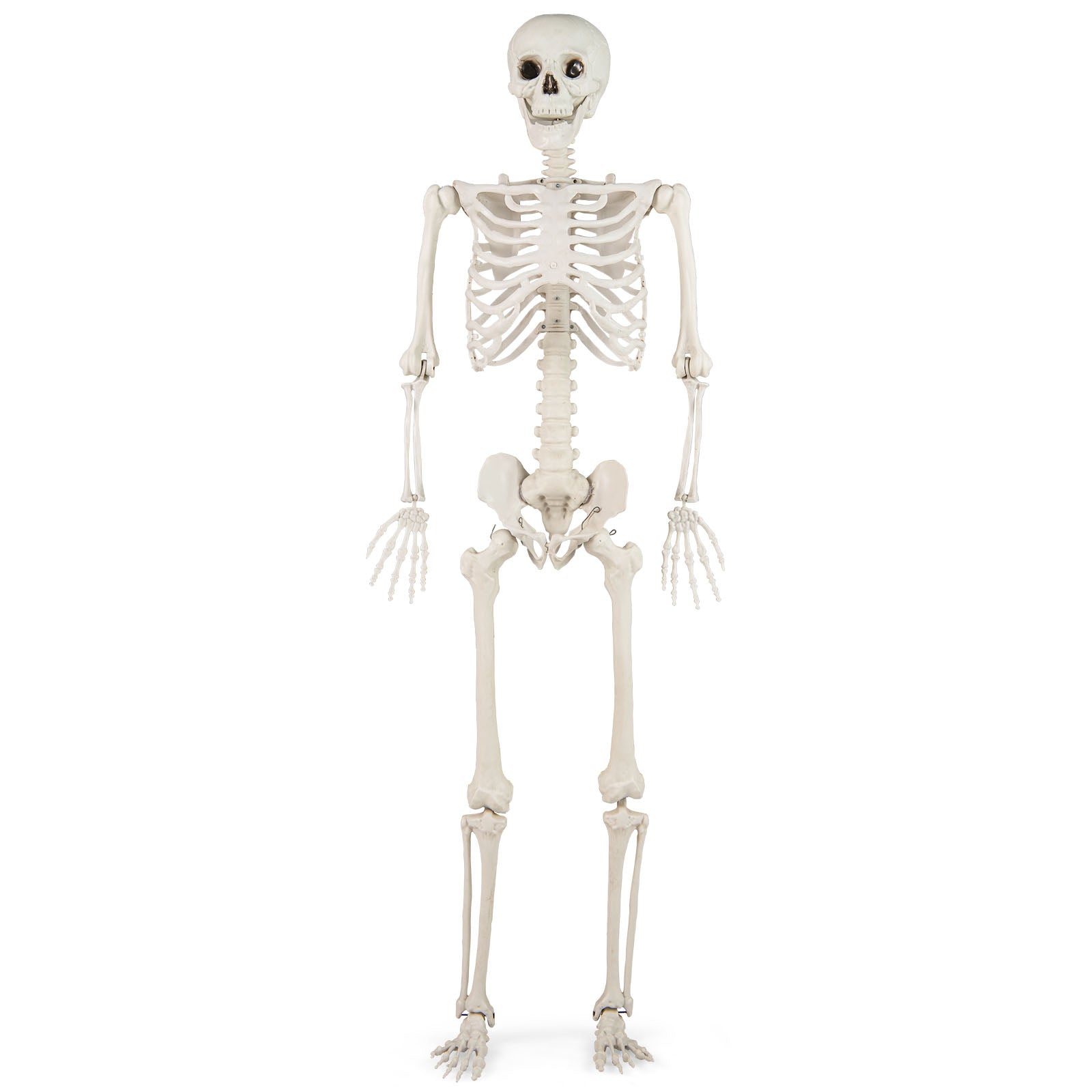 ● Posable Joints: With movable joints in the shoulders elbows wrists thighs knees ankles and jaw the Halloween skeleton is all set to strike a pose. Let it sit wave or even participate in a front porch skeleton dance-off. It is sure to be a hit this Halloween and beyond.