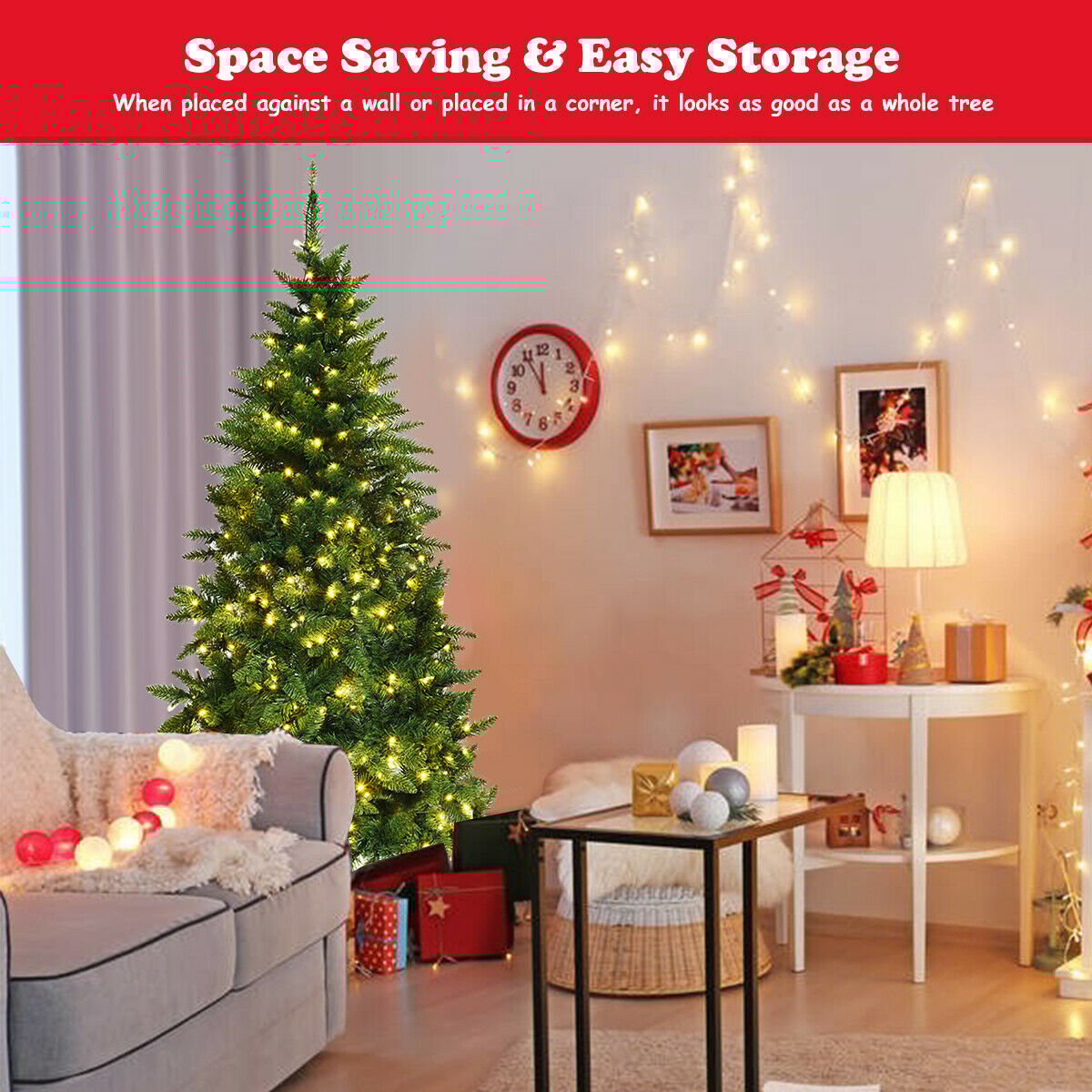 Pre-Lit Artificial Half National Christmas Tree with 8 Flash Modes-6 ft