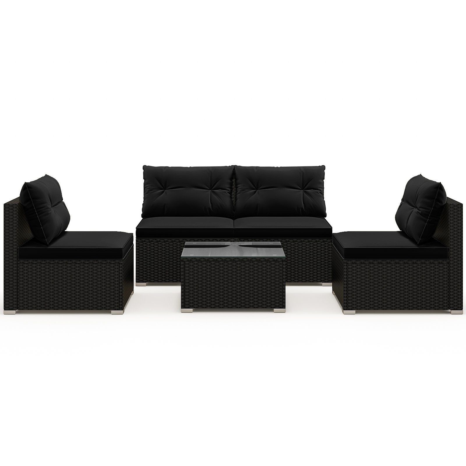 5-Piece Outdoor Patio Furniture Set with Cushions and Coffee Table-Black