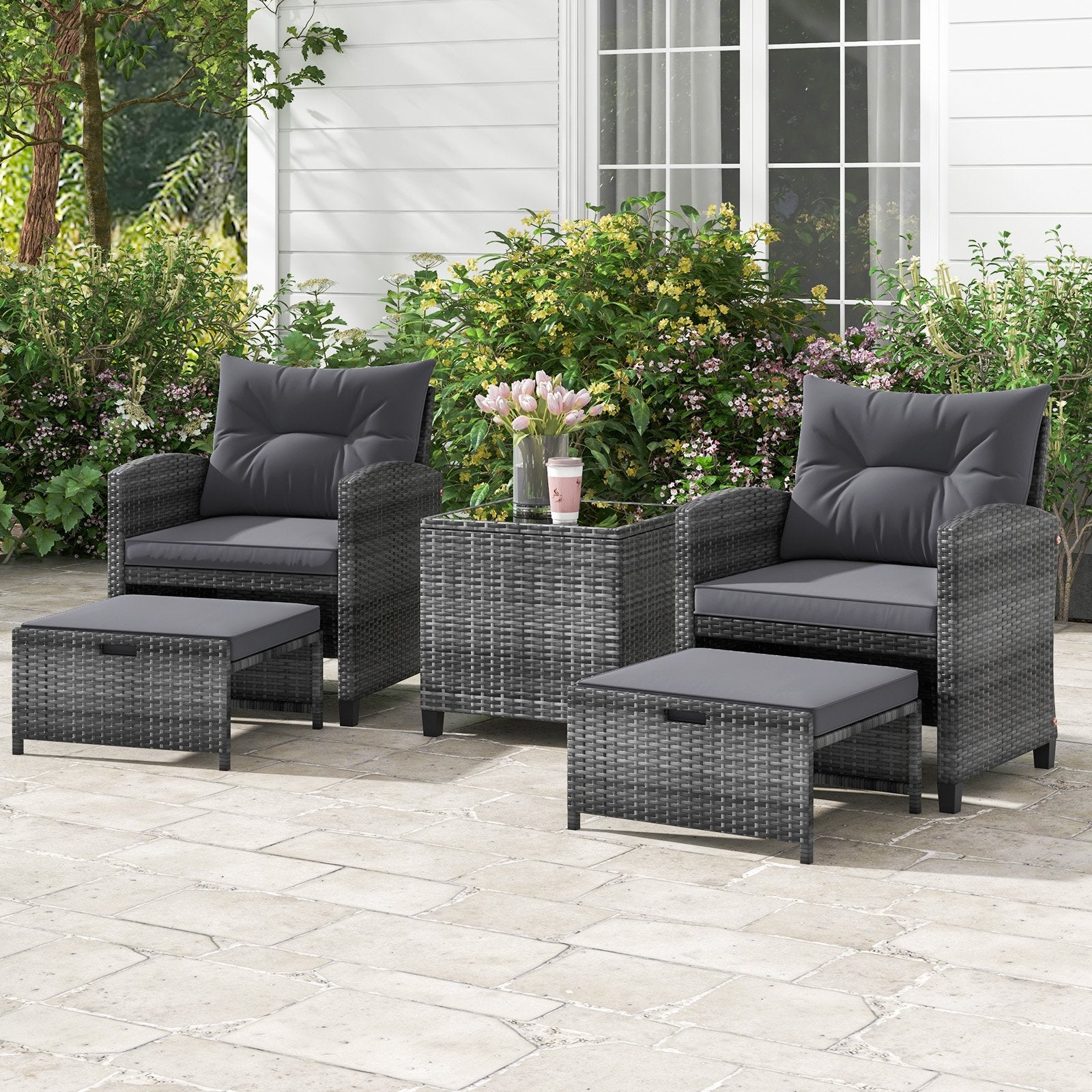 ● Well-Crafted Rattan Surface: This 5-piece patio furniture set boasts well-woven mix gray PE rattan which is long-lasting and anti-fading for long-term use. Moreover the rattan surface is also elegant to make the whole set eye-catching.