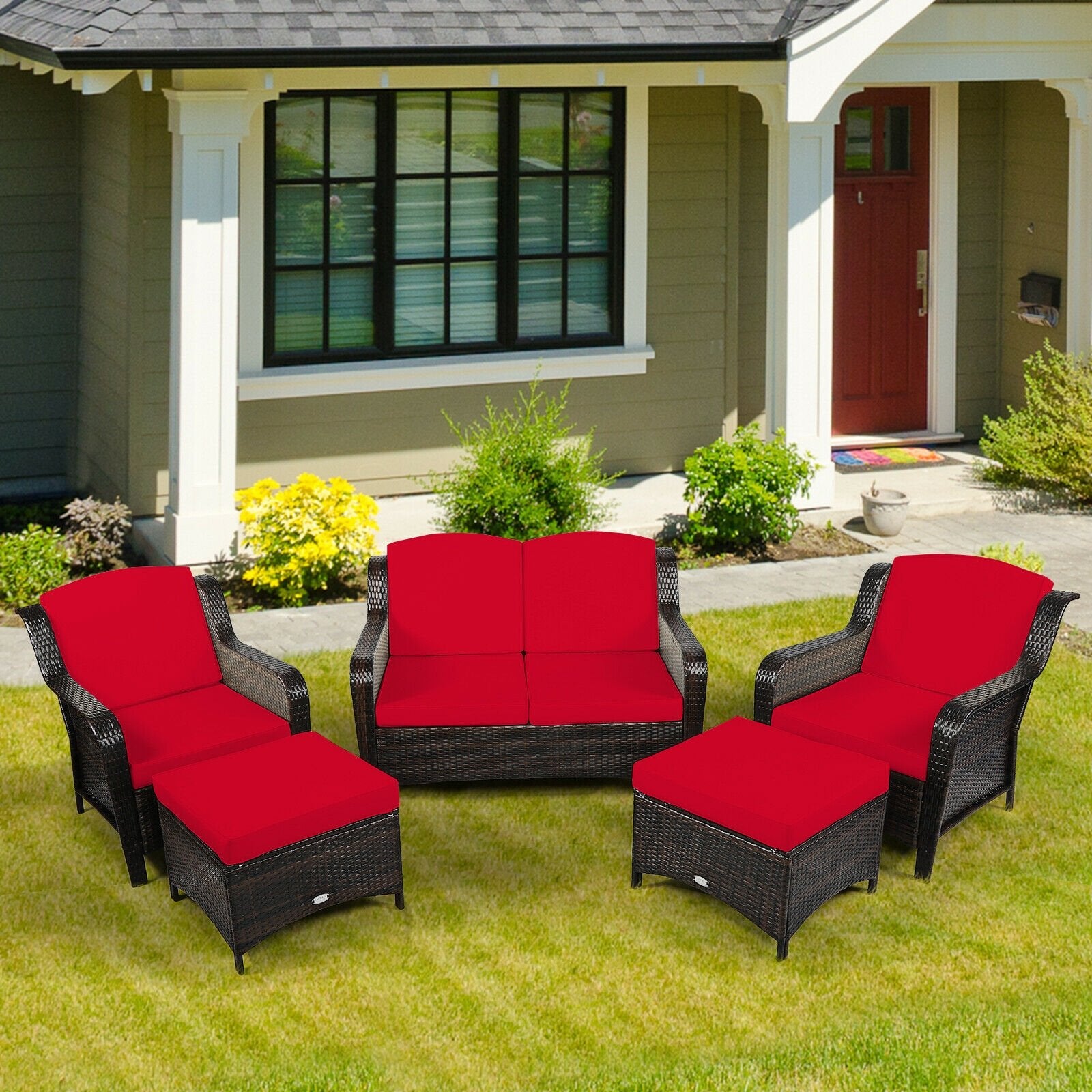 5 Pieces Patio Rattan Sofa Set with Cushion and Ottoman-Black