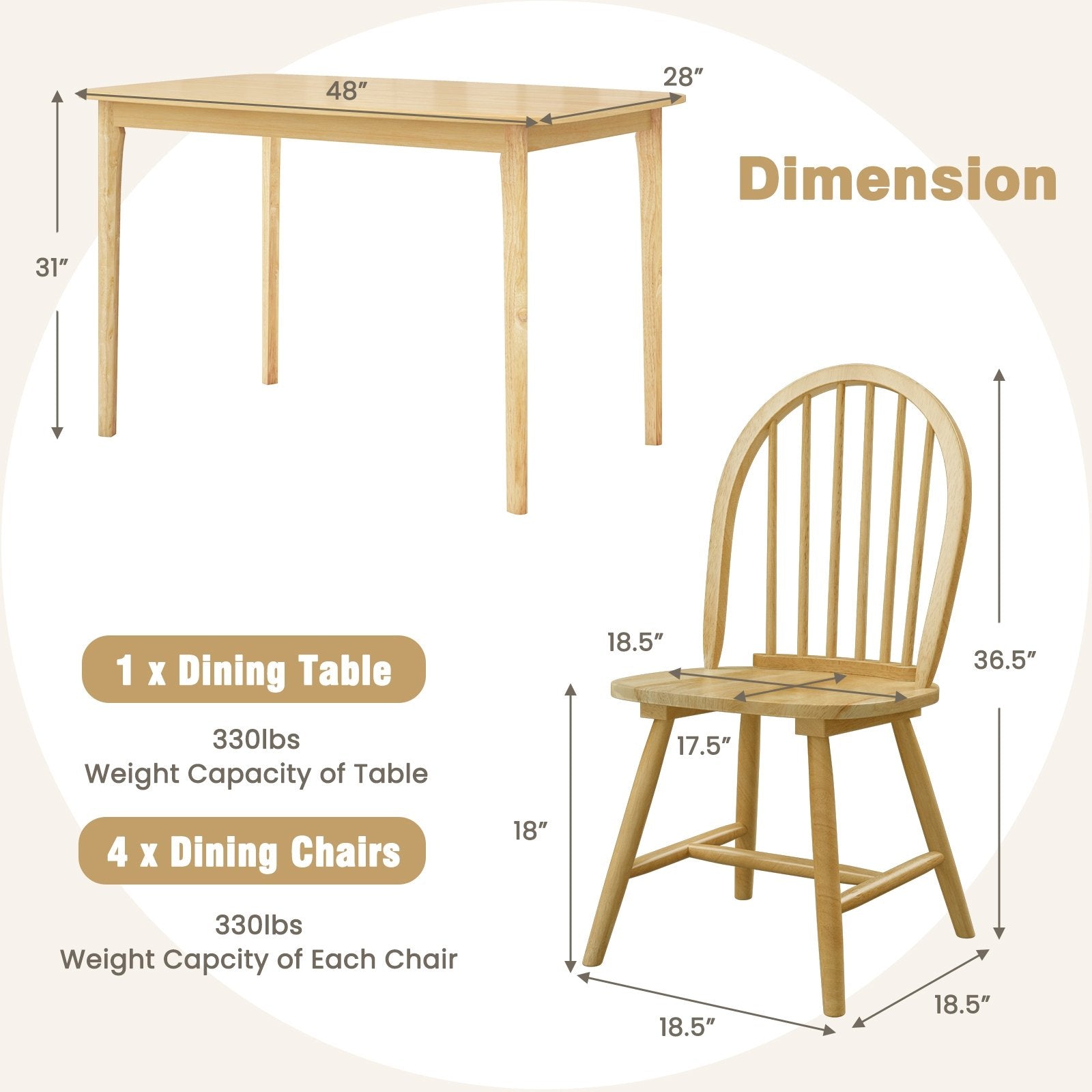 5 Pieces Wooden Dining Table Set with 4 Windsor Chairs