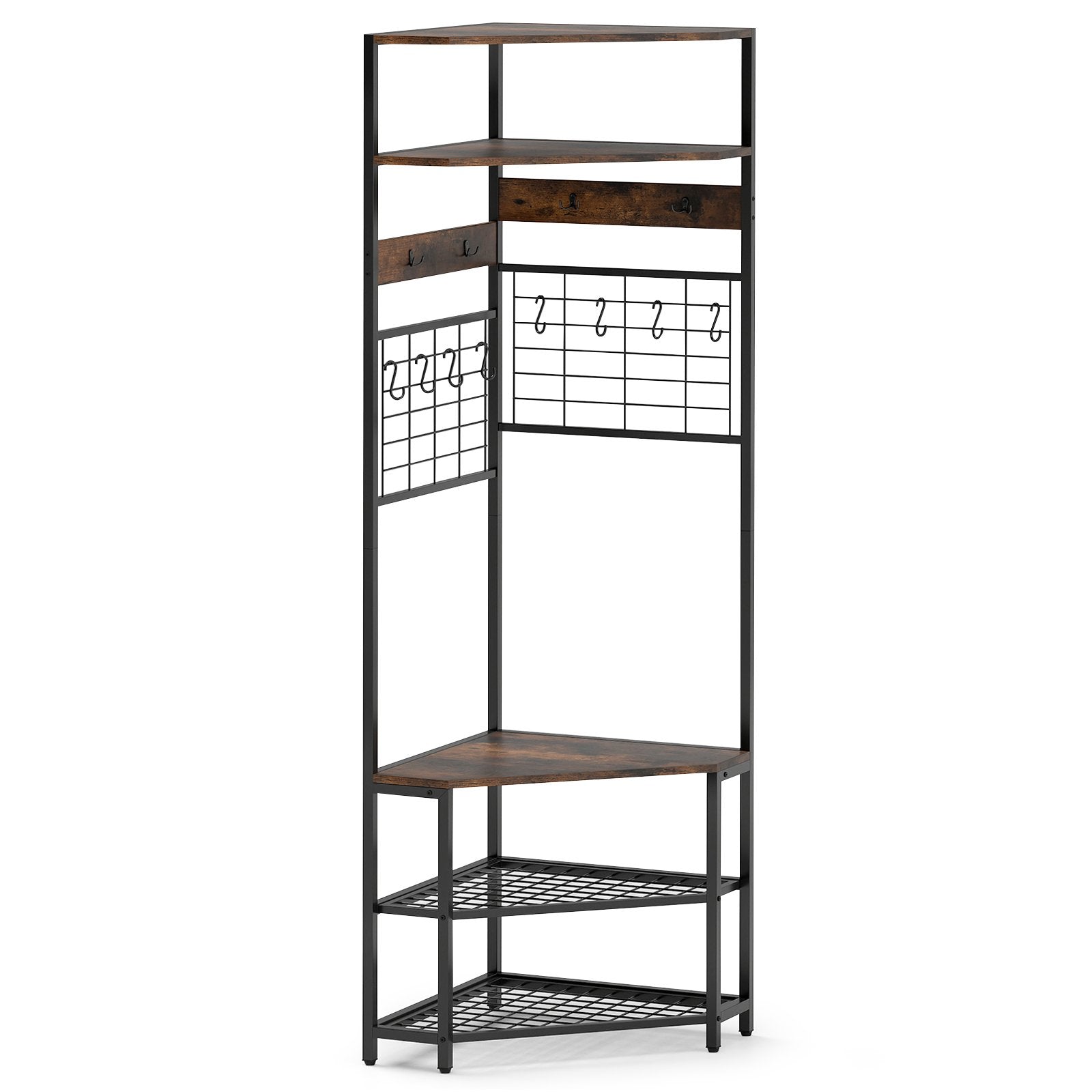 5-Tier Corner Hall Tree with Shoe Storage Bench-Rustic Brown