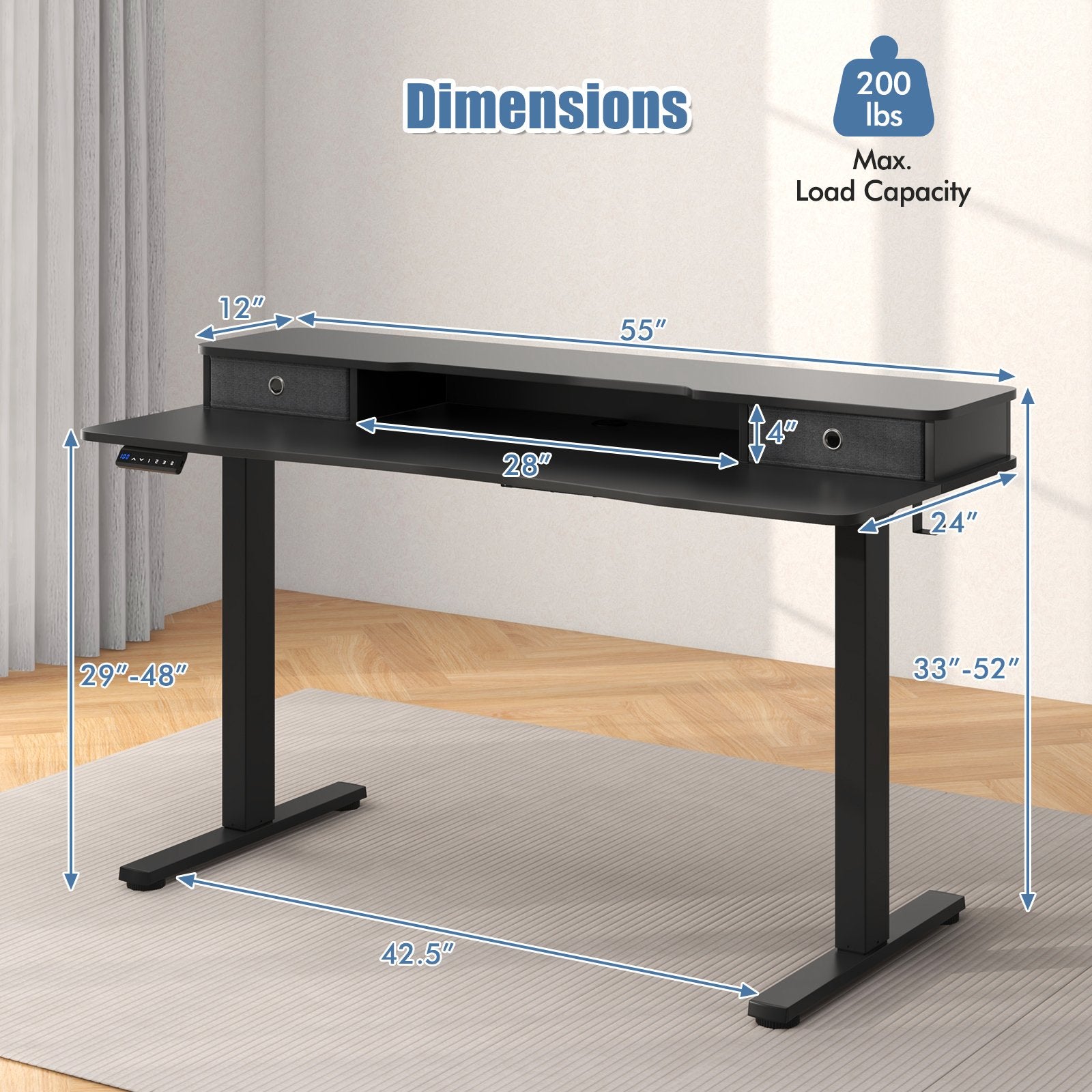 55 Inch x 24 Inch Height Adjustable Electric Standing Desk with 2 Drawers-Black