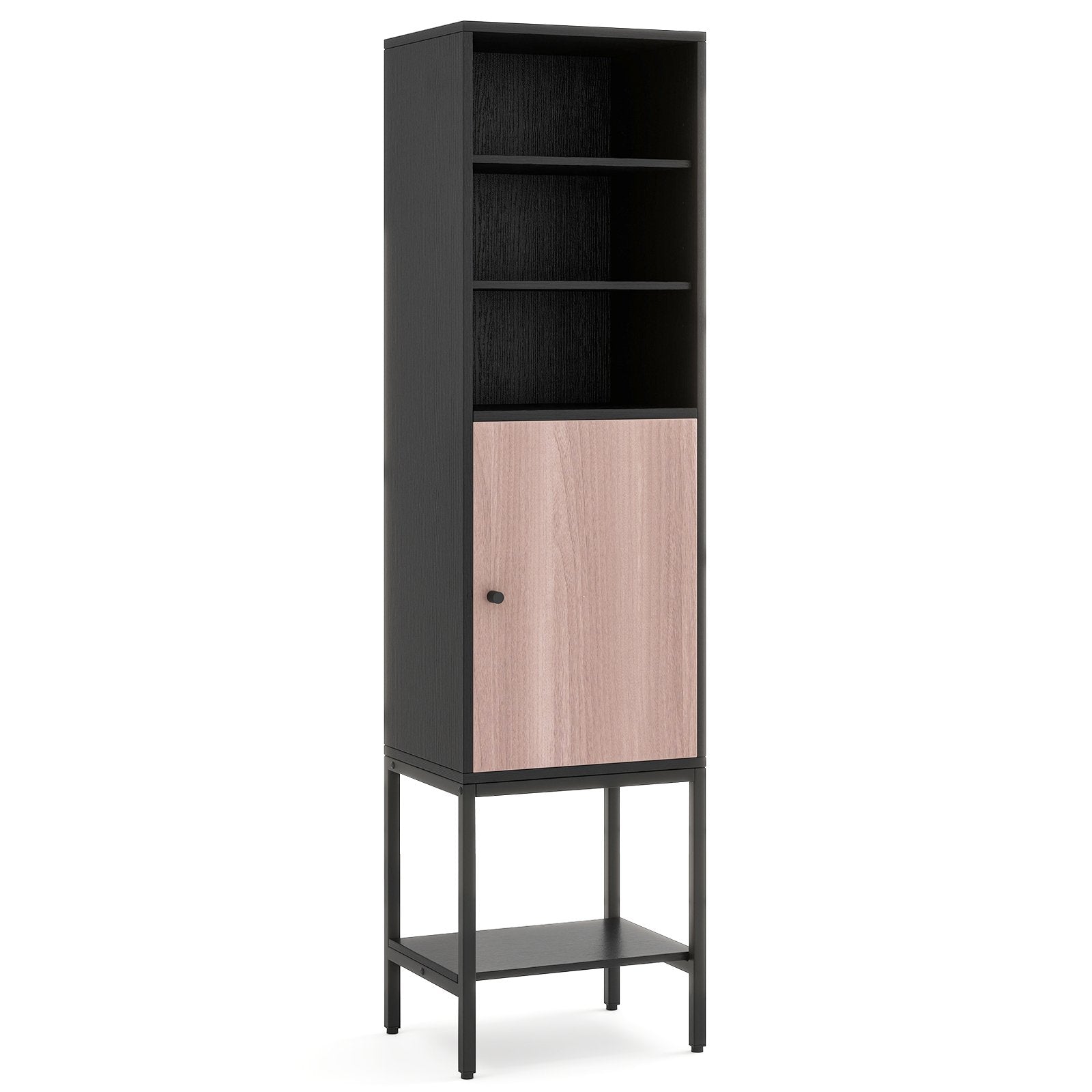 57 Inch Bathroom Tall Cabinet with 1 Door and 4 Shelves Narrow Storage Unit-Black