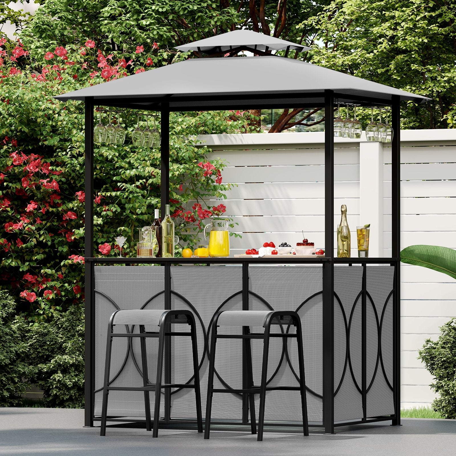 6.5 x 4 x 8 FT Grill Gazebo Set with 2 Bar Stools and Bar Table-Brown