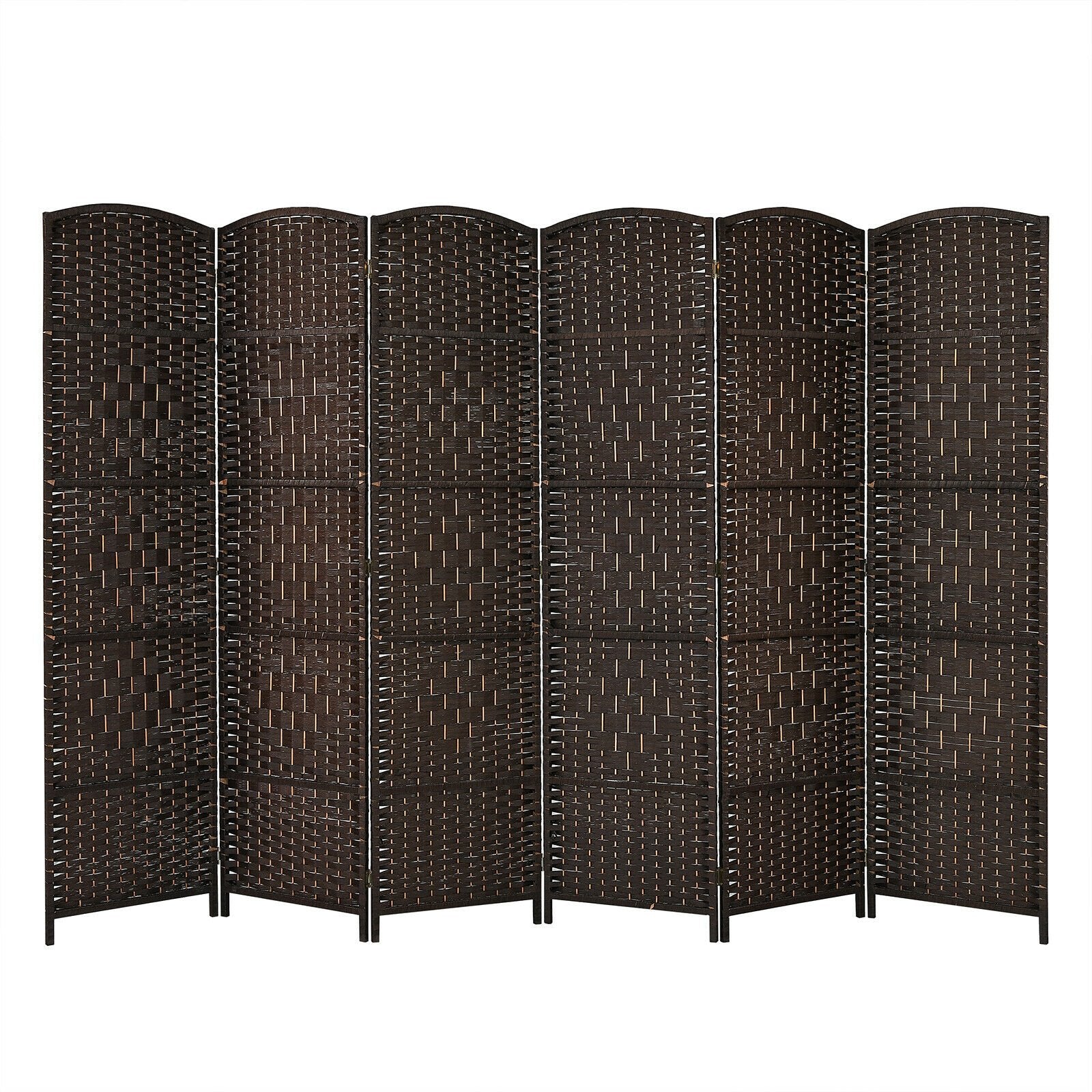 6.5Ft 6-Panel Weave Folding Fiber Room Divider Screen-Black