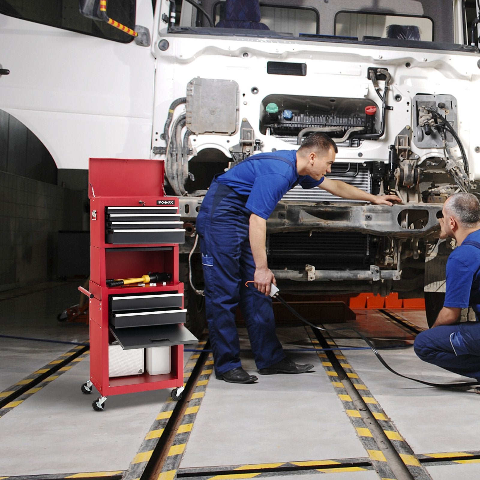 ● Portable Top Box with Enhanced Security: The top box can be easily detached from heightening cabinet by unscrewing 4 screws so that you can carry it anywhere you want. And the swiveling side handles make it extremely portable. It is worth mentioning that the keyed locking system is capable of prevent your valuable tools from being stolen.