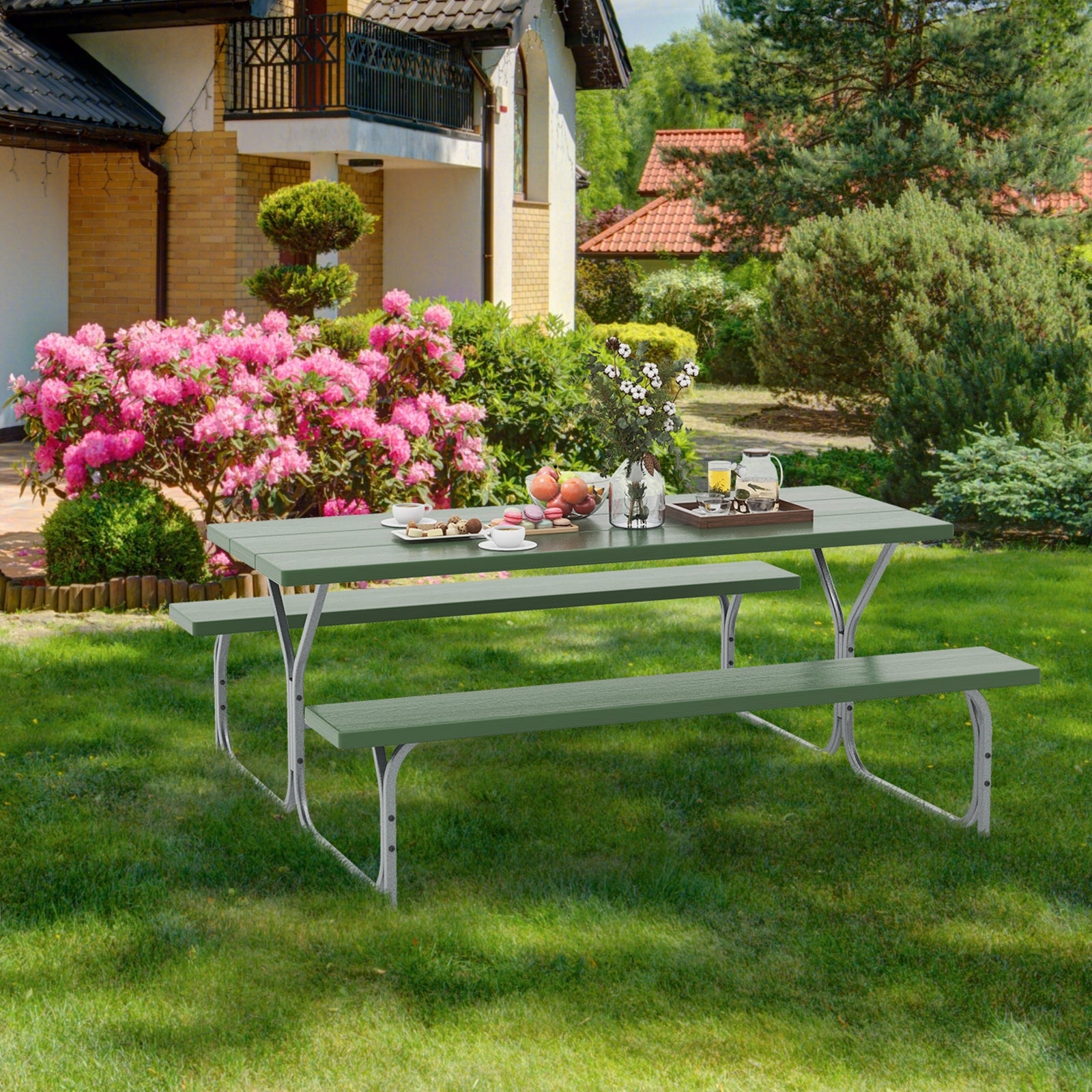 6 Feet Picnic Table Bench Set with HDPE Tabletop for 8 Person-Black
