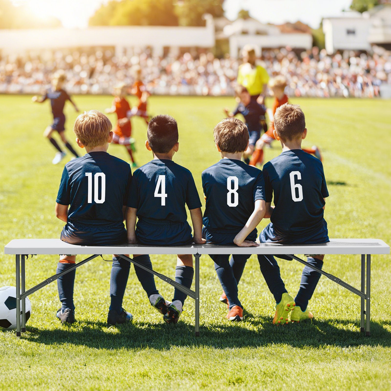 ● Premium HDPE Seat: This folding bench features a 1.58" thickened HDPE seat which is sunproof waterproof anti-fading and easy to maintain providing a smooth and sturdy sitting experience for all users at outdoor events.