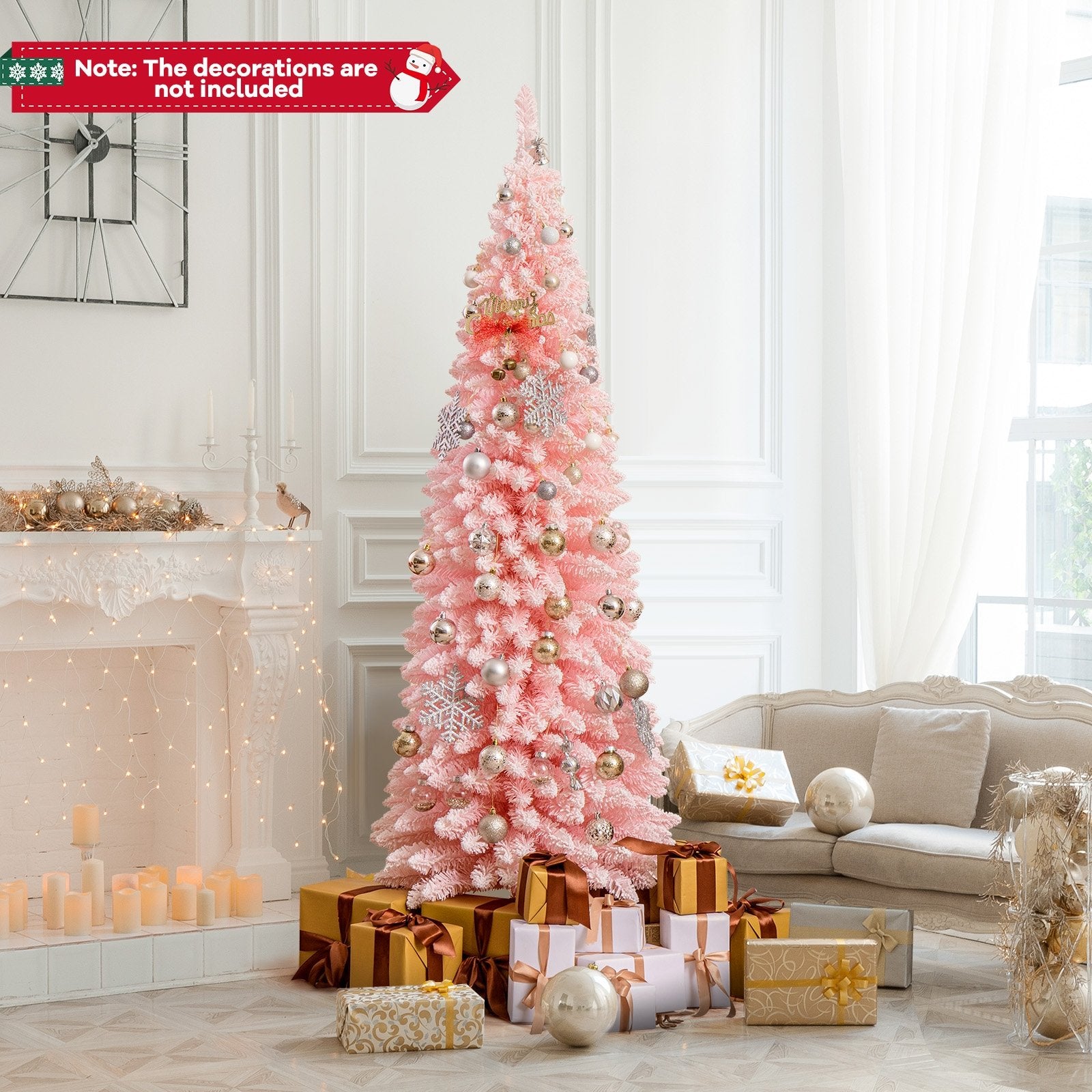 ● Full and Attractive Appearance: Equipped with 460 branch tips the slim Xmas tree exudes a lush appearance. Moreover the snow flocked Christmas tree comes with delicate pink leaves that sets it apart from traditional Christmas trees.