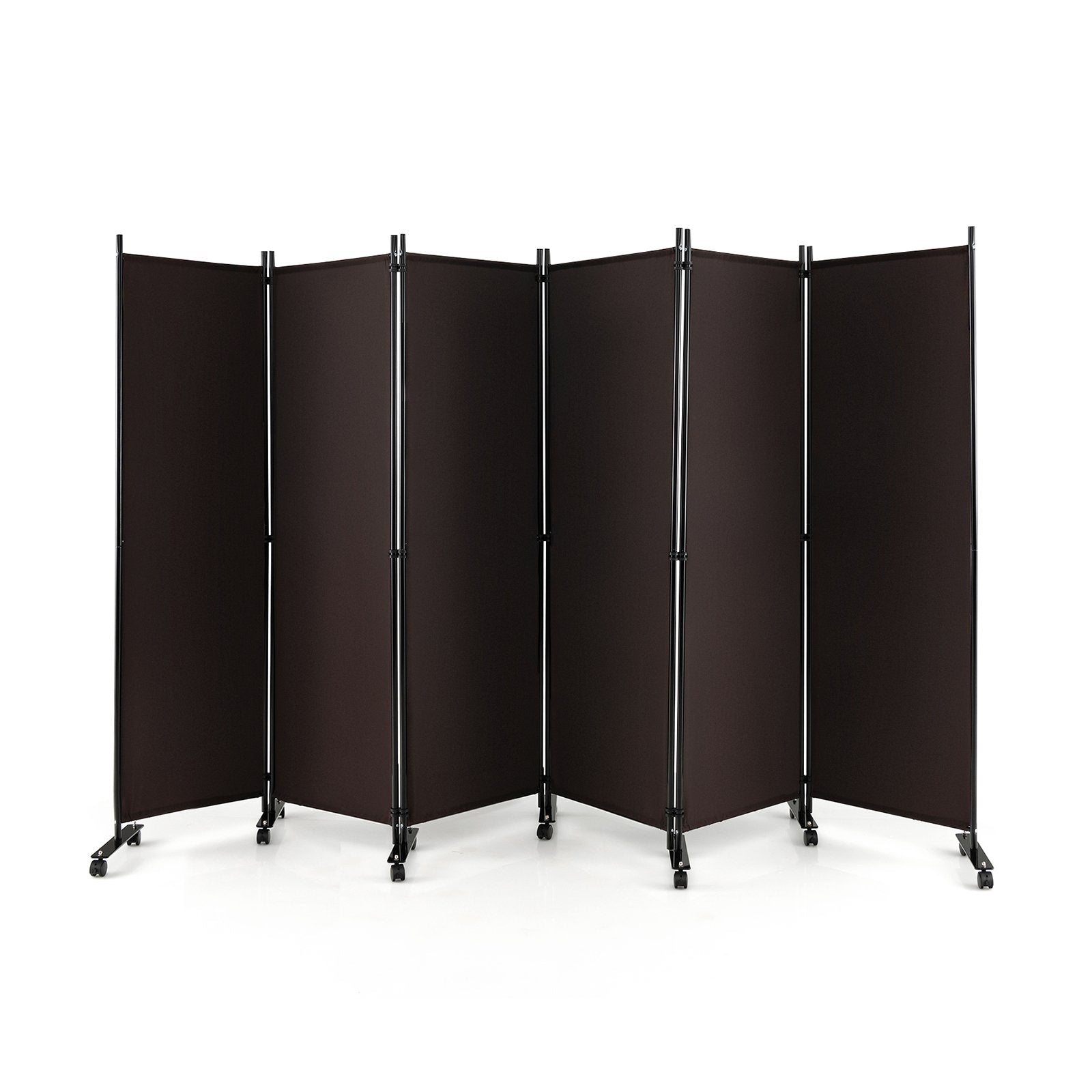 6 Panel 5.7 Feet Tall Rolling Room Divider on Wheels-Black