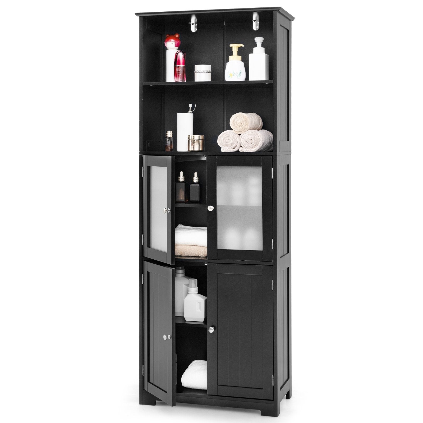● 6-Tier Enclosed and Open Storage Space: Equipped with 2-tier open storage shelves and 2 cabinets with doors this tall bathroom storage cabinet offers large storage space to keep various items well organized. Besides there are two 3-position adjustable shelves that allow you to customize interior storage space as you need.