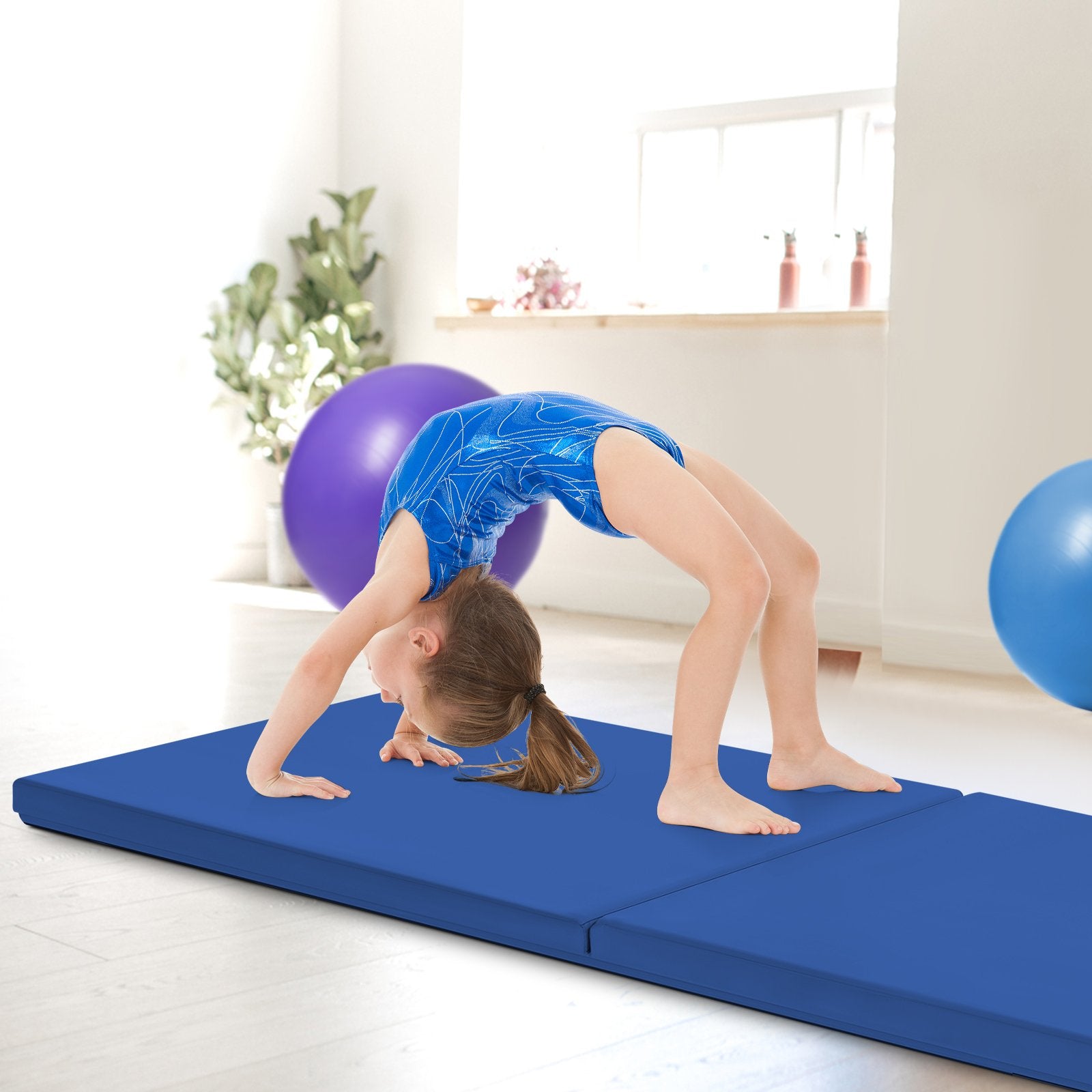 6 x 2 Feet Gymnastic Mat with Carrying Handles for Yoga-Blue