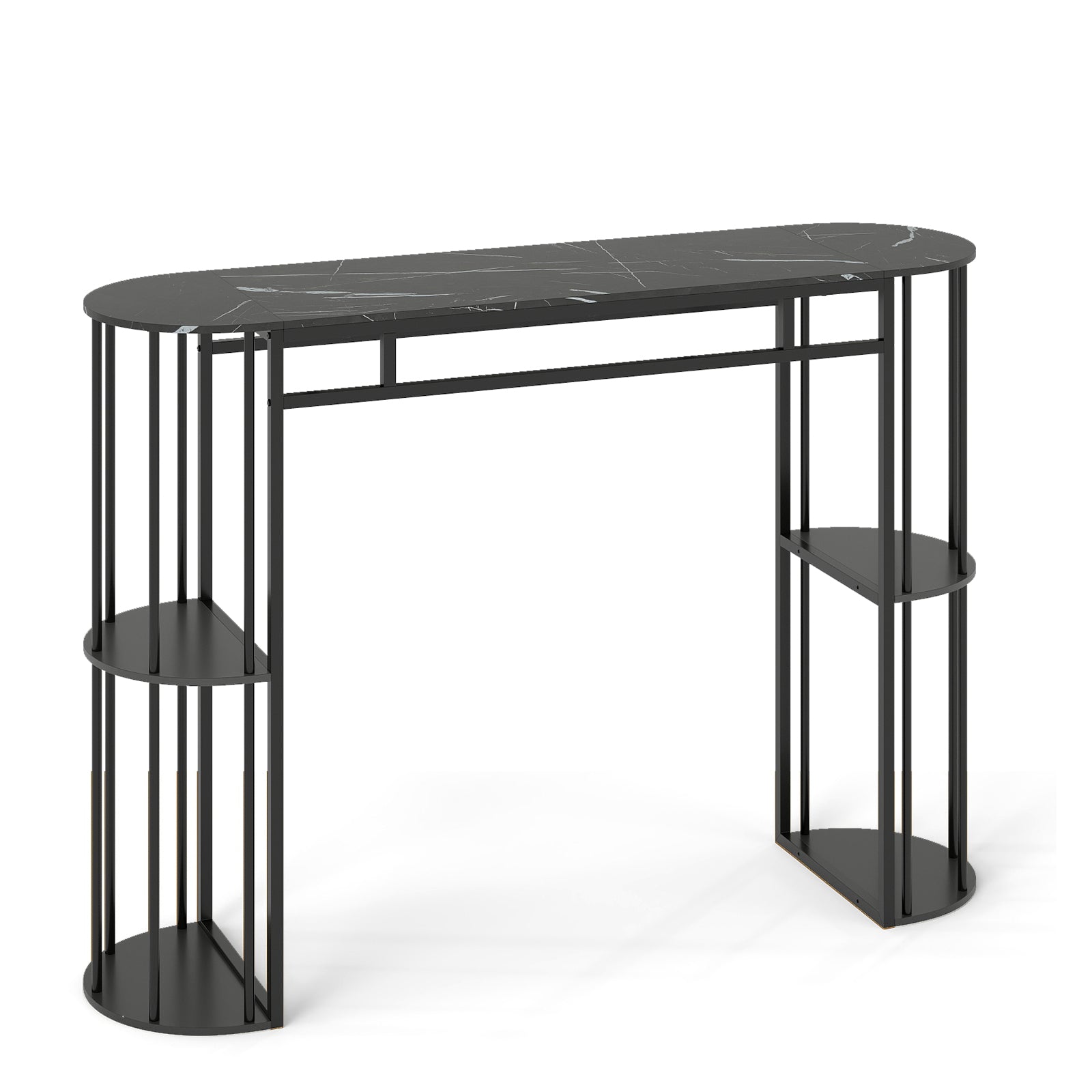 60 Inch Long Bar Table Narrow with Faux Marble Tabletop and Storage Shelves-Black