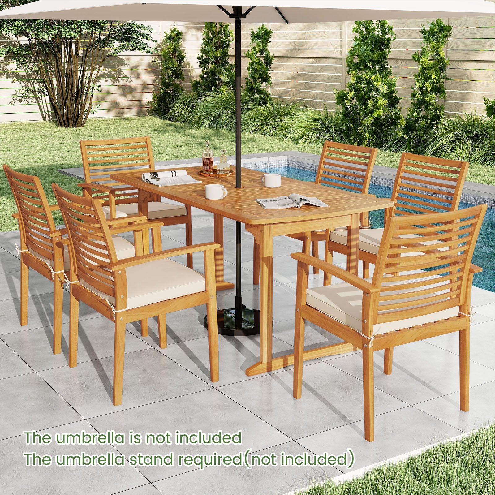 ● Solid Acacia Wood Structure: Made from 100% natural acacia wood the patio dining table is known for its resistance to cracks and exceptional durability. Enhanced with a solid base reinforced wood slats and sturdy triangle support the patio table ensures unmatched strength and steadiness.Please apply wood polish oil to the wood surface regularly and please avoid rain exposure for prolonged lifespan.