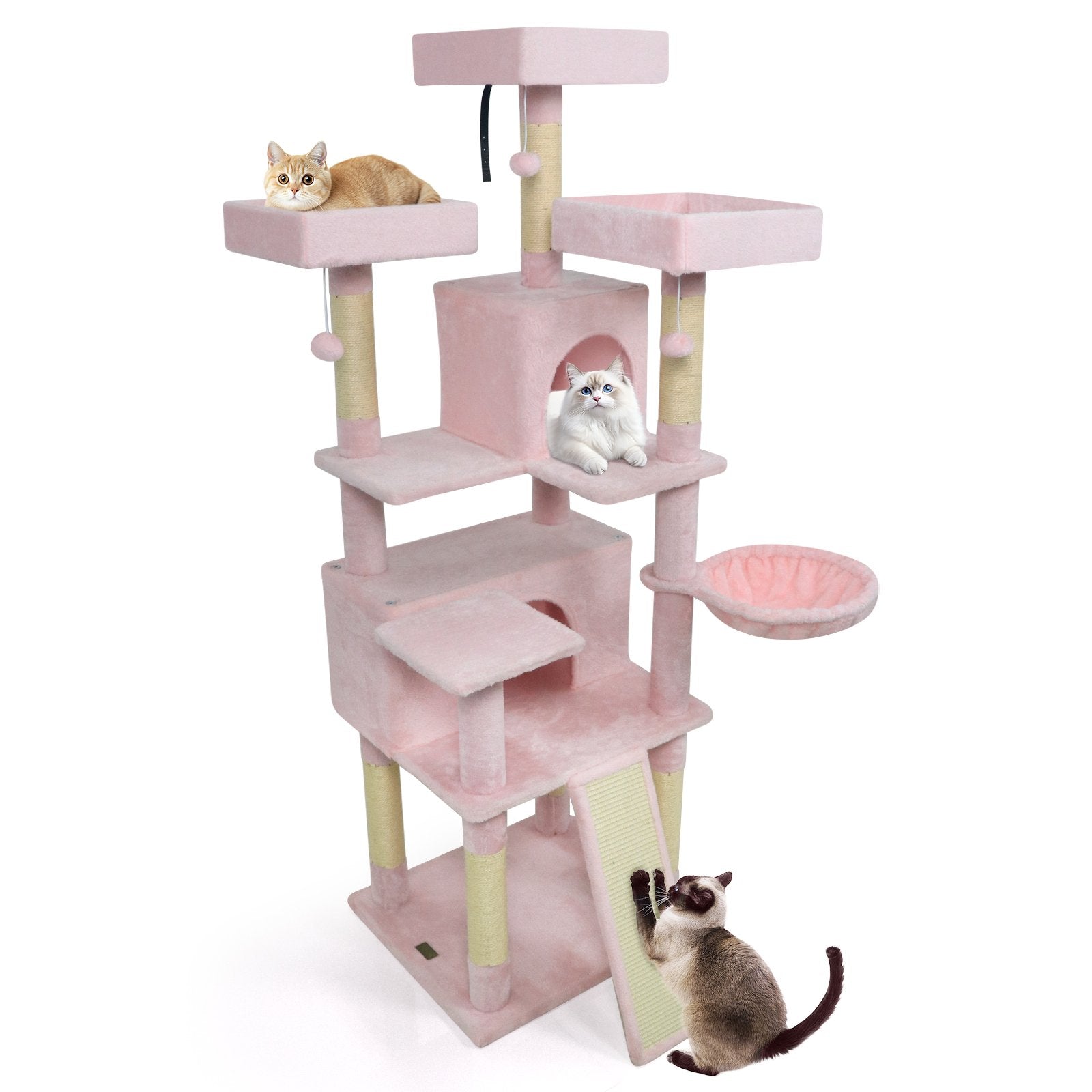 ● Satisfy Cat's Scratching Instinct: The tall cat tree features wear-resistant scratching posts perfect for releasing your cat's natural scratching instincts. Plus the ladder with a scratching board provides more space for cats to grind their claws.