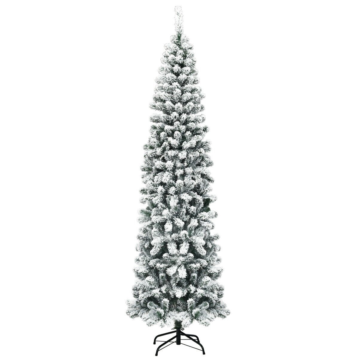 7.5 Feet Unlit Hinged Snow Flocked Artificial Pencil Christmas Tree with 641 Tips