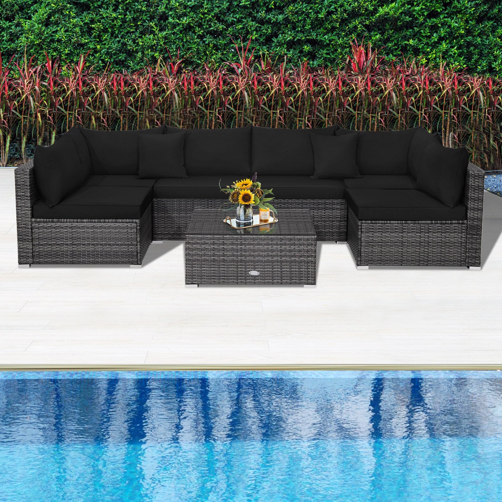 7 Pieces Patio Rattan Furniture Set with Sectional Sofa Cushioned-Beige