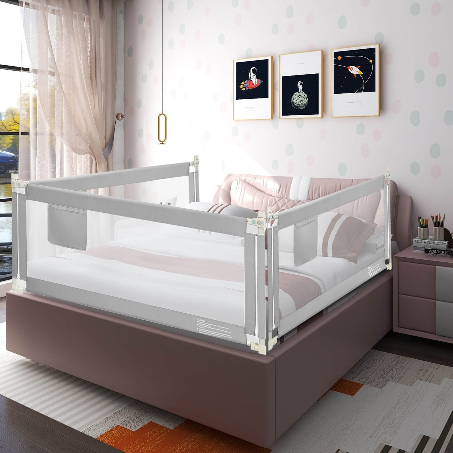 76.8 Inch Baby Bed Rail with Double Safety Child Lock-Gray