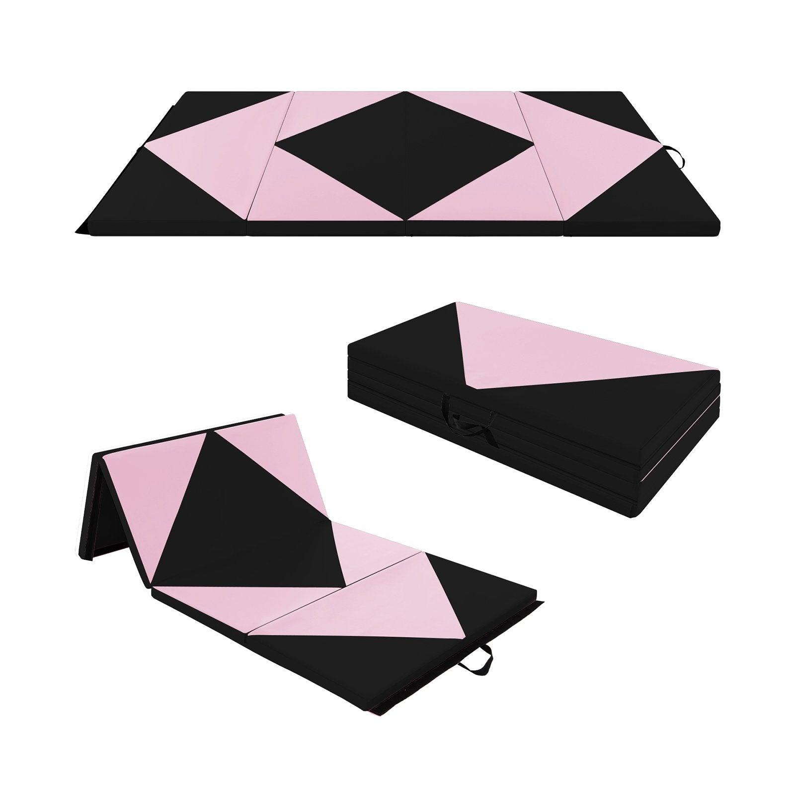 8 Feet PU Leather Folding Gymnastics Mat with Hook and Loop Fasteners-Black & Pink