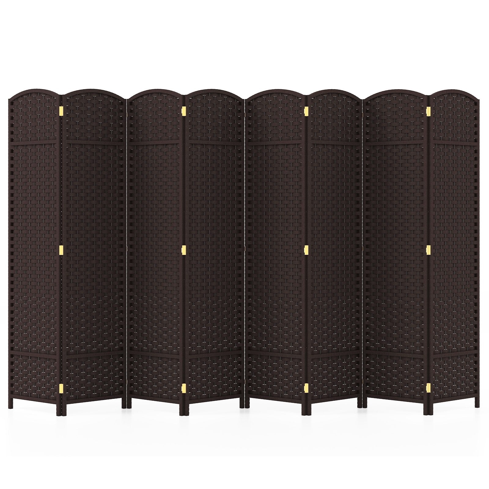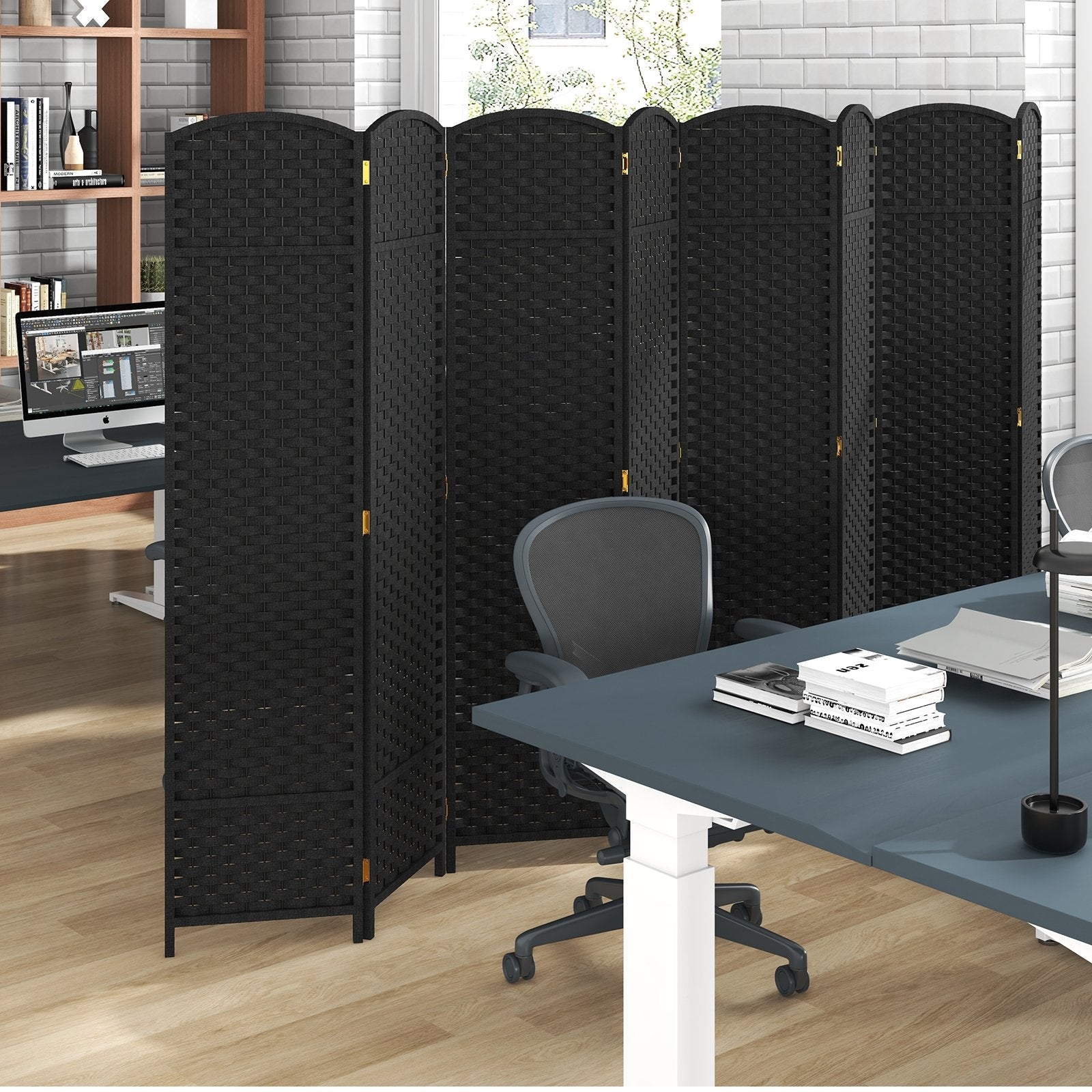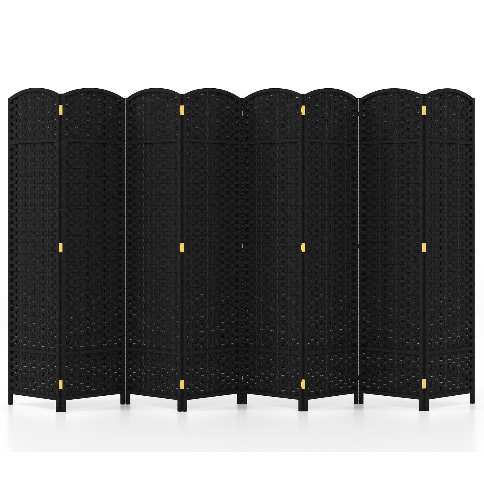 8-Panel Folding Room Divider with Hand-woven Texture and Wood Frame-Black