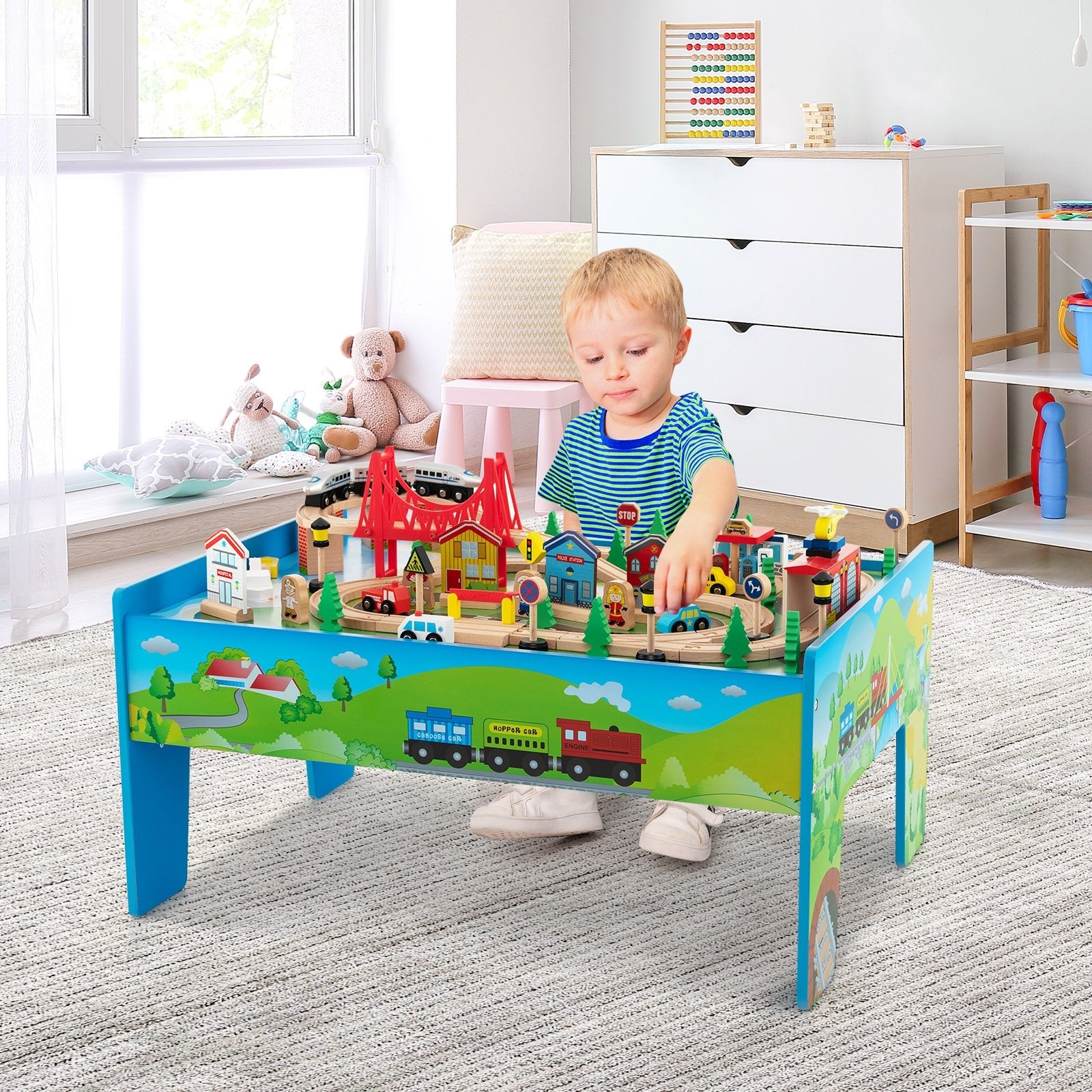 ● More Child-friendly Design: With 16" reasonable height this kids-sized train table is suitable for 3 + years old toddlers to play. Colorful appearance appeals to kids. All accessories on the tabletop are easy to access. The round corners protect kids from accidental bumping or scratching. It will be a perfect gift for children.