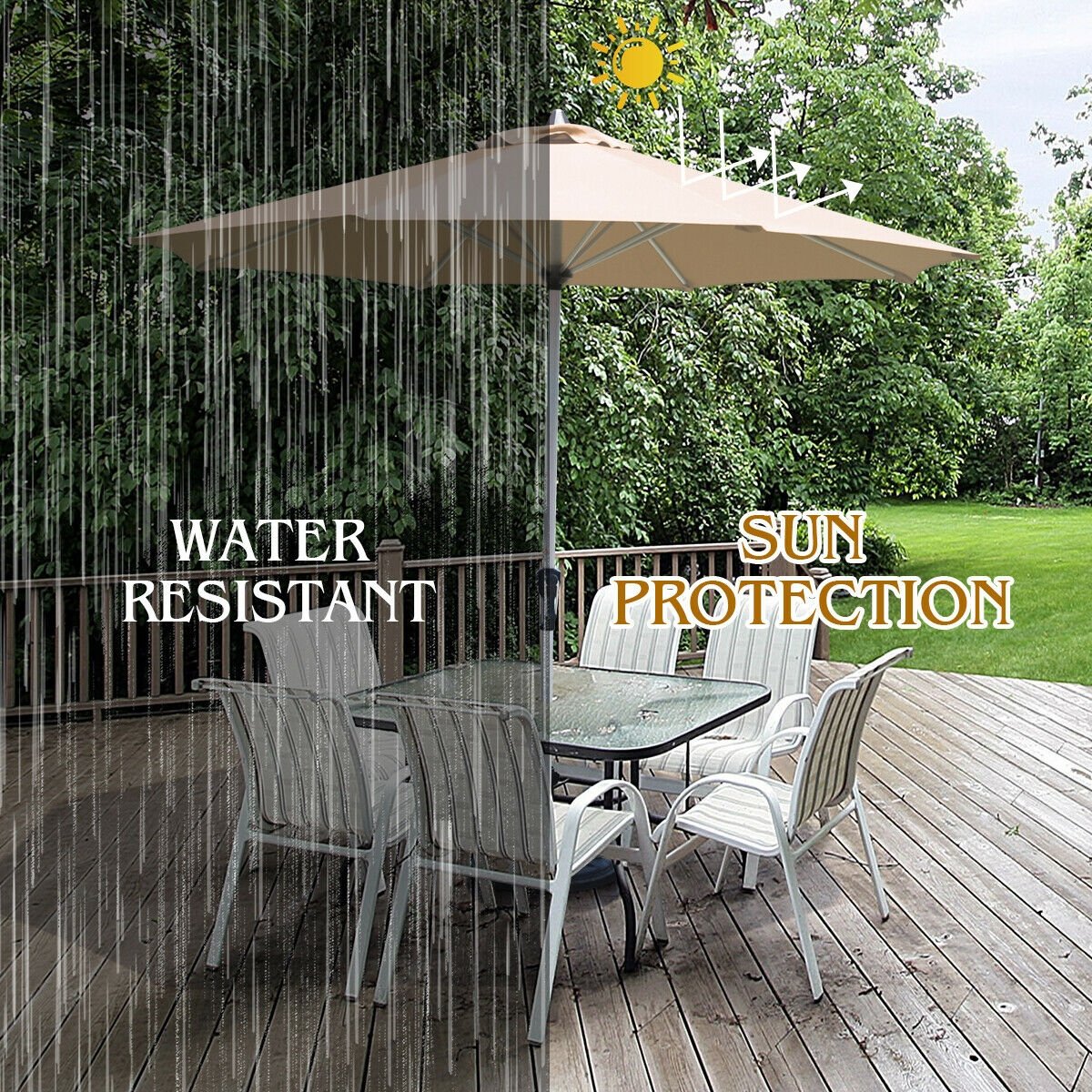- Convenient Crank & Easy Assembly: Connect the upper part of the umbrella pole to the lower part and fix it on the base (not included) then open the umbrella with a convenient crank mechanism and you can enjoy the breeze on the terrace! In addition a sewn-in strap can easily wrap around the closed umbrella when not in use.