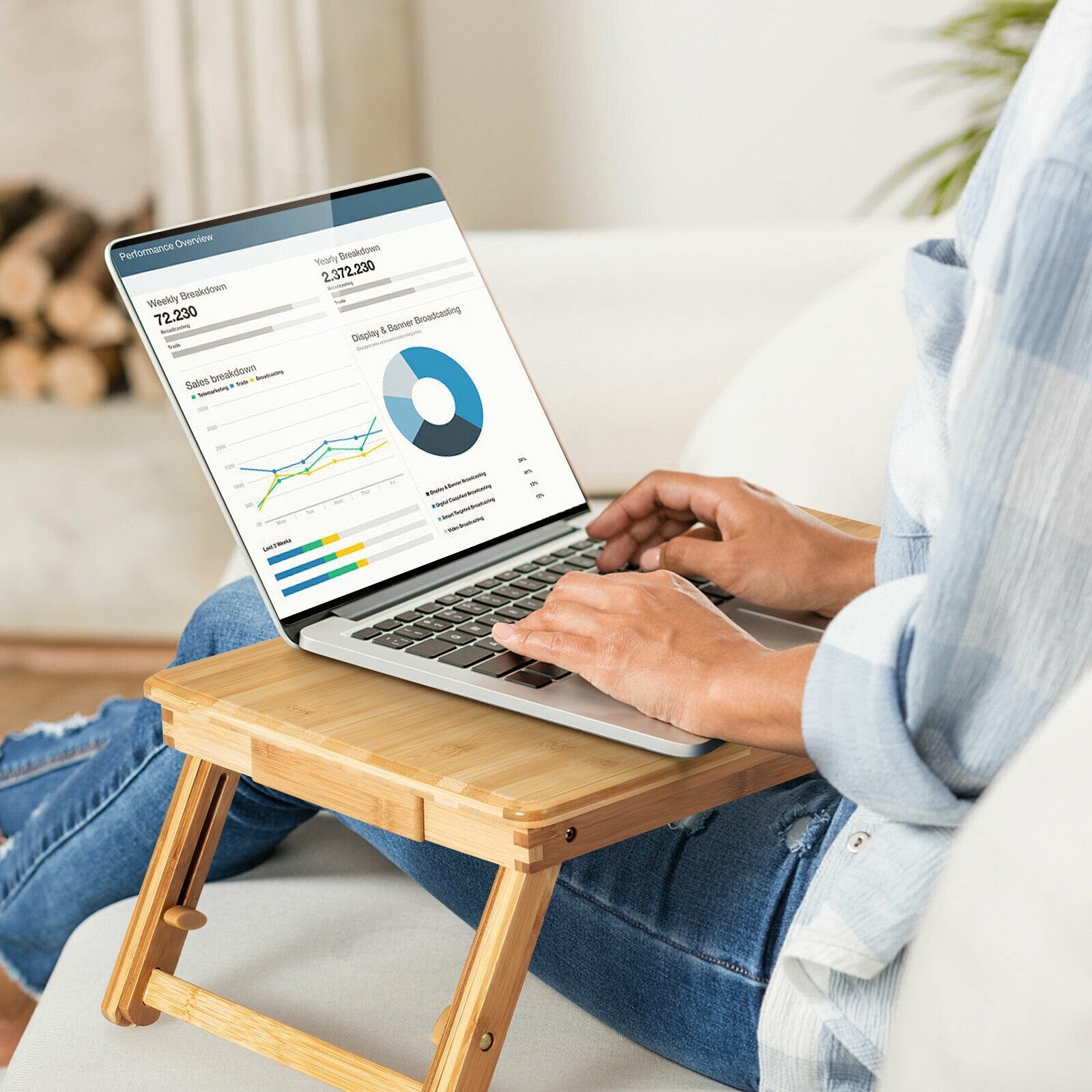 ● Tilting Angle and Adjustable Height: The laptop desk contains a 4-level tilting desktop that allows you to find the ideal position for ergonomic typing. Plus with an 8”-10.5” adjustable desktop height you can say goodbye to back strain as you work.