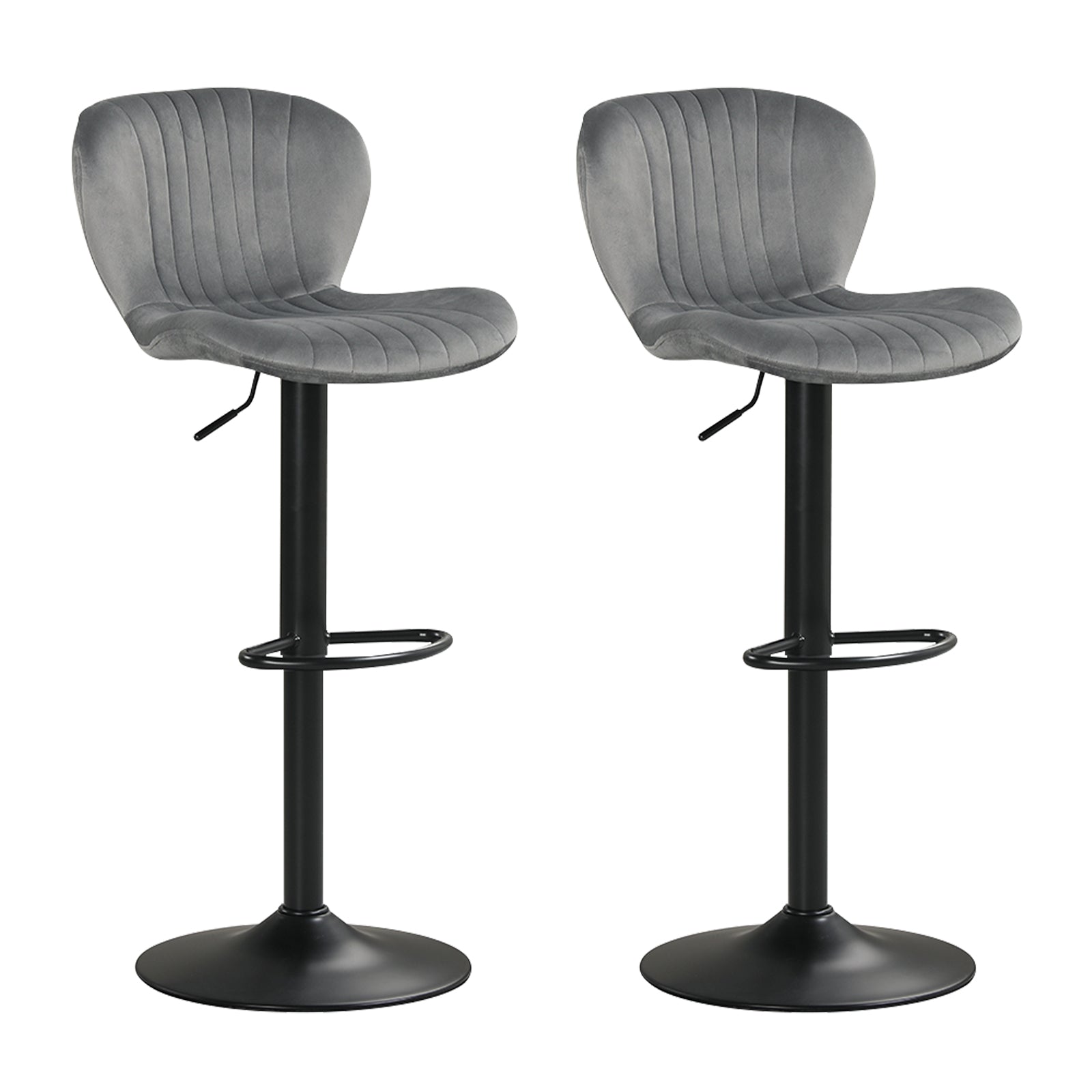 Adjustable Counter Height Chairs Set of 2 with Velvet Upholstered Backrests-Black