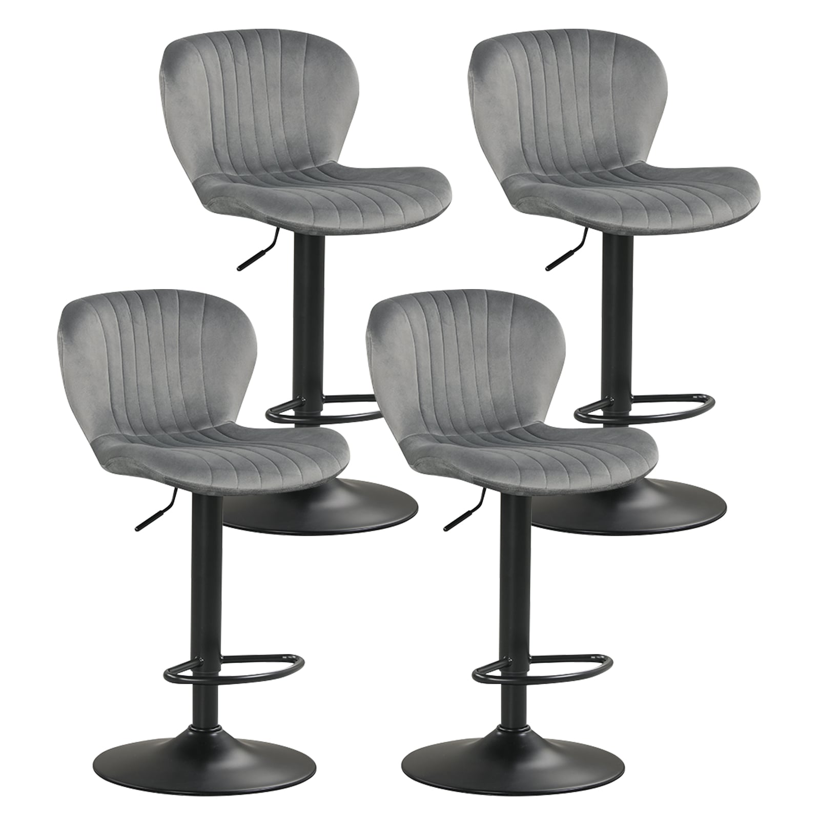 Adjustable Counter Height Chairs Set of 4 with Velvet Upholstered Backrests-Black