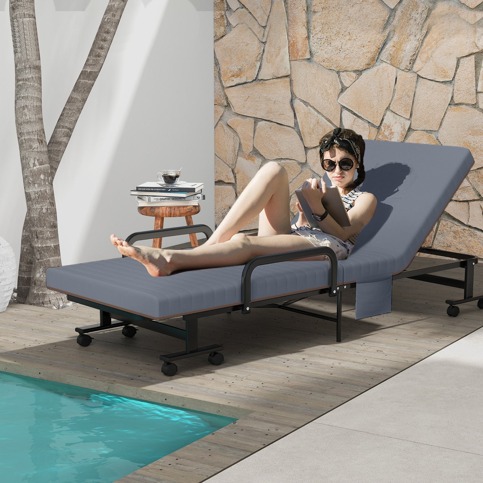 ● 6 Adjustable Positions: This single bed can be adjusted to 6 positions you can choose a suitable angle to have a rest. The convertible bed can be used as a single bed when in a horizontal state and it can also act as the lounge chair when the back rises. The folding guest bed is a good choice for resting in the guest room or office which can reduce your fatigue.