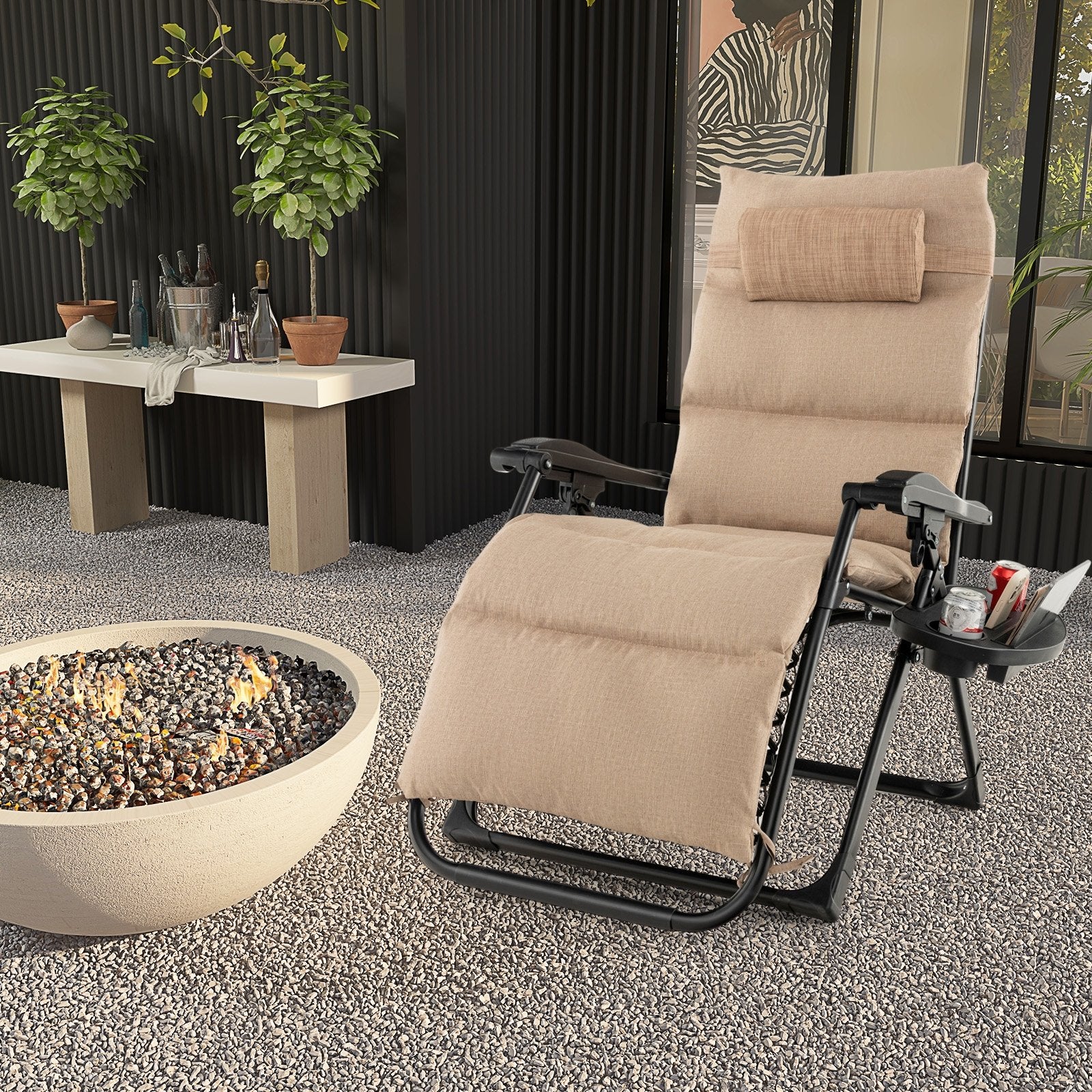 Adjustable Metal Zero Gravity Lounge Chair with Removable Cushion and Cup Holder Tray-Beige