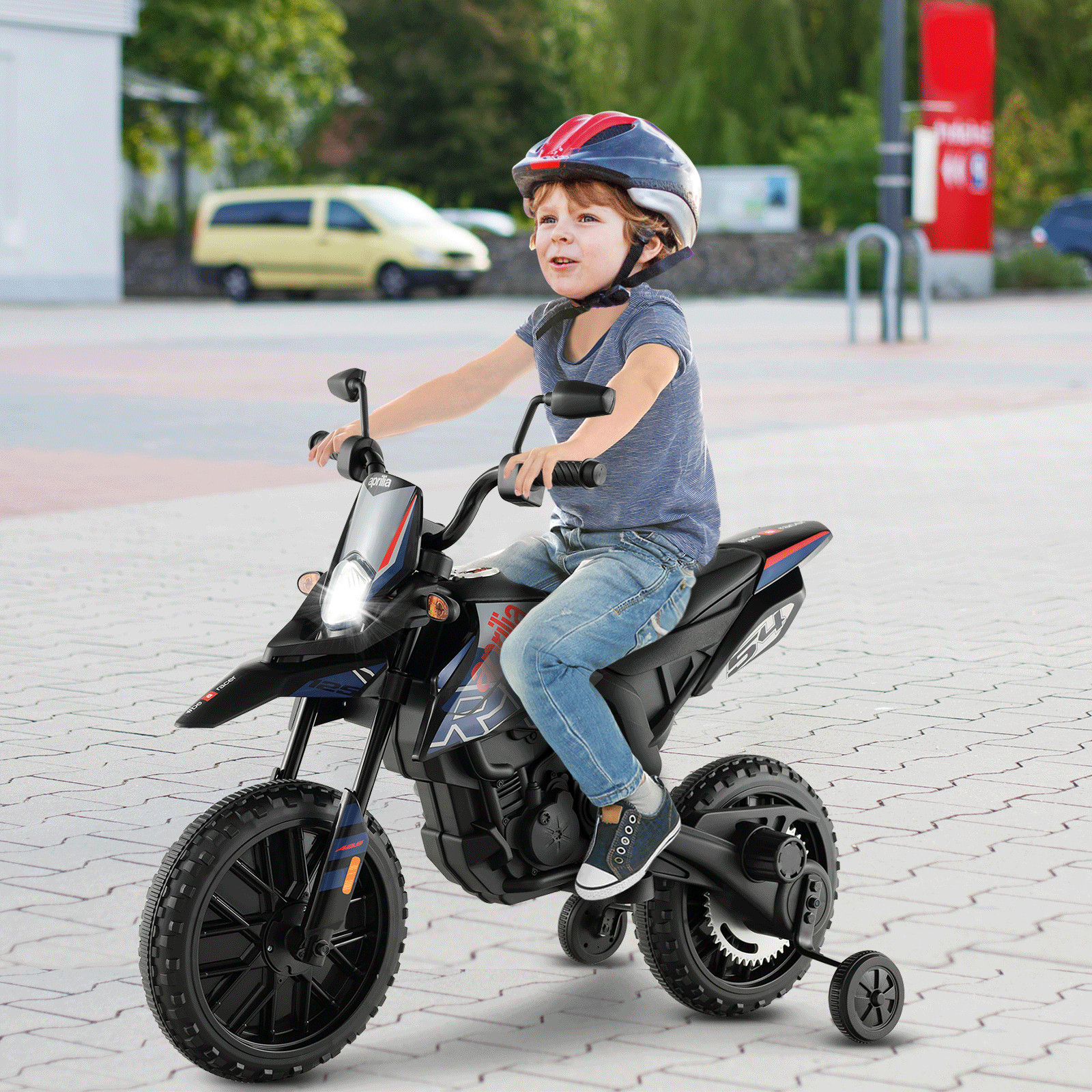 ● Perfect Gift to Take an Adventure: This 12V Aprilia licensed motorbike is an ideal gift for kids' birthdays or other special days. Certified by ASTM and CPSIA it's safe enough for kids from 3 to 8 years old to take an adventure. During riding they can exercise fine motor skills and develop hand-feet coordination.