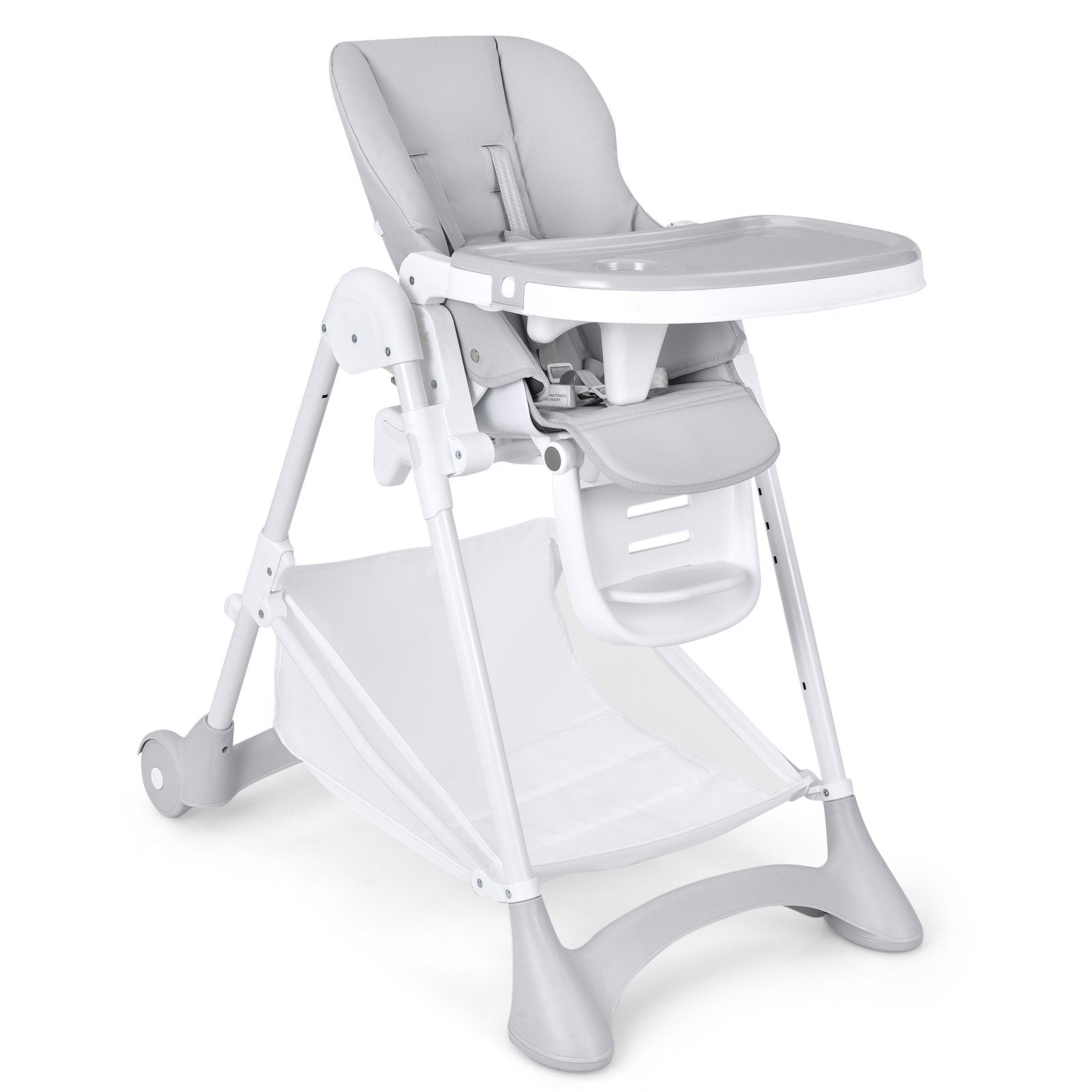Baby Convertible Folding Adjustable High Chair with Wheel Tray Storage Basket-Beige
