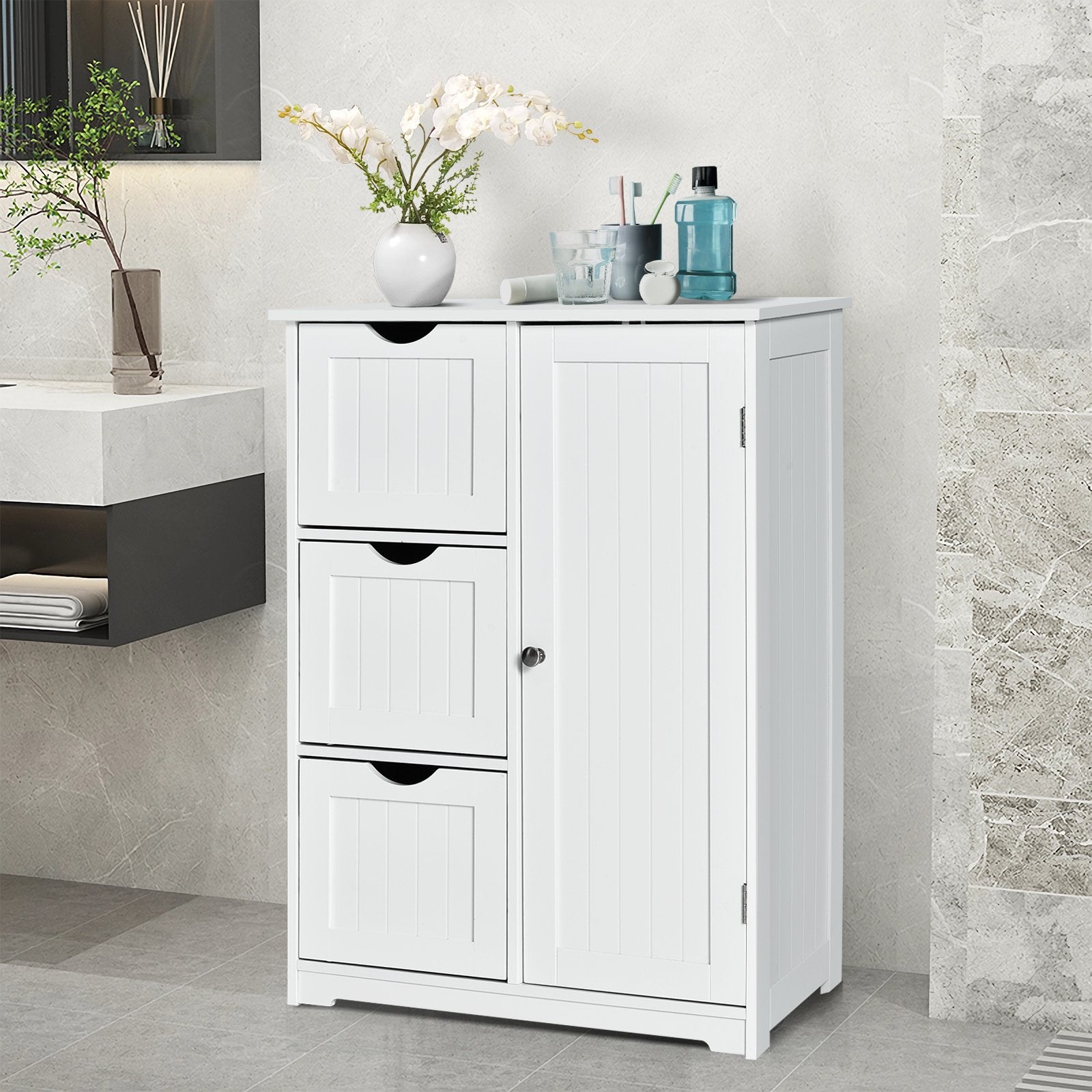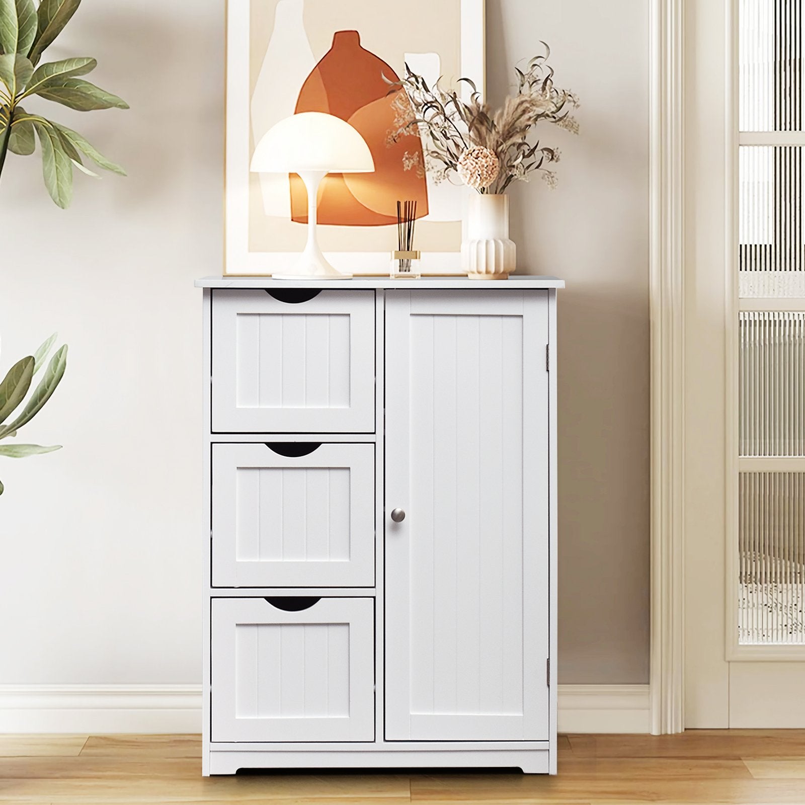 Bathroom Floor Cabinet Side Storage Cabinet with 3 Drawers and 1 Cupboard-Black
