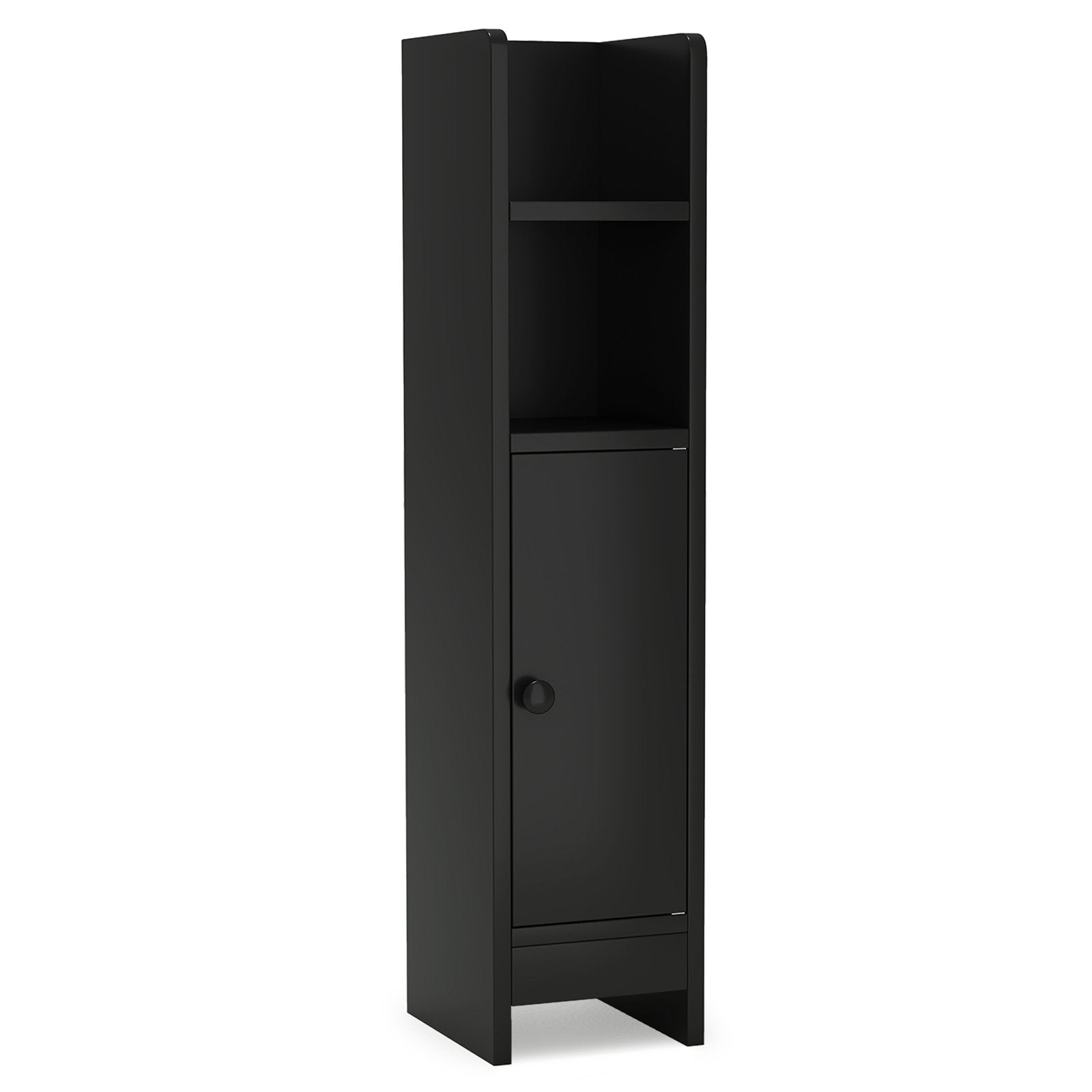 Bathroom Slim Cabinet Corner with Door and Adjustable Shelf-Black