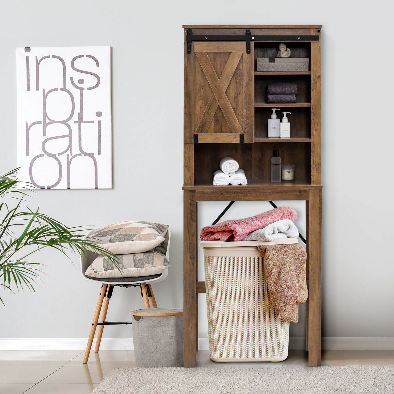 Bathroom Storage Cabinet with Sliding Barn Door and 3-level Adjustable Shelves-Rustic Brown
