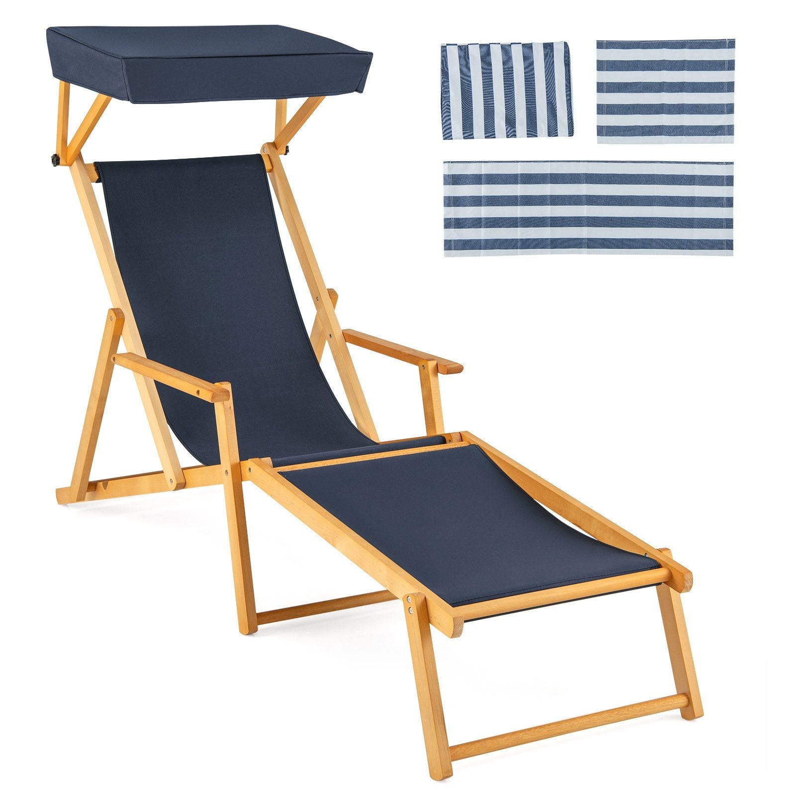 Birch Wood Chaise Lounge Chair Foldable Beach Chair with Adjustable Canopy-Brown