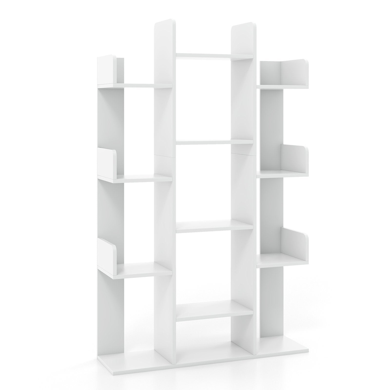 Tree-Shaped Bookshelf with 13 Compartments for Home Office-Rustic Brown