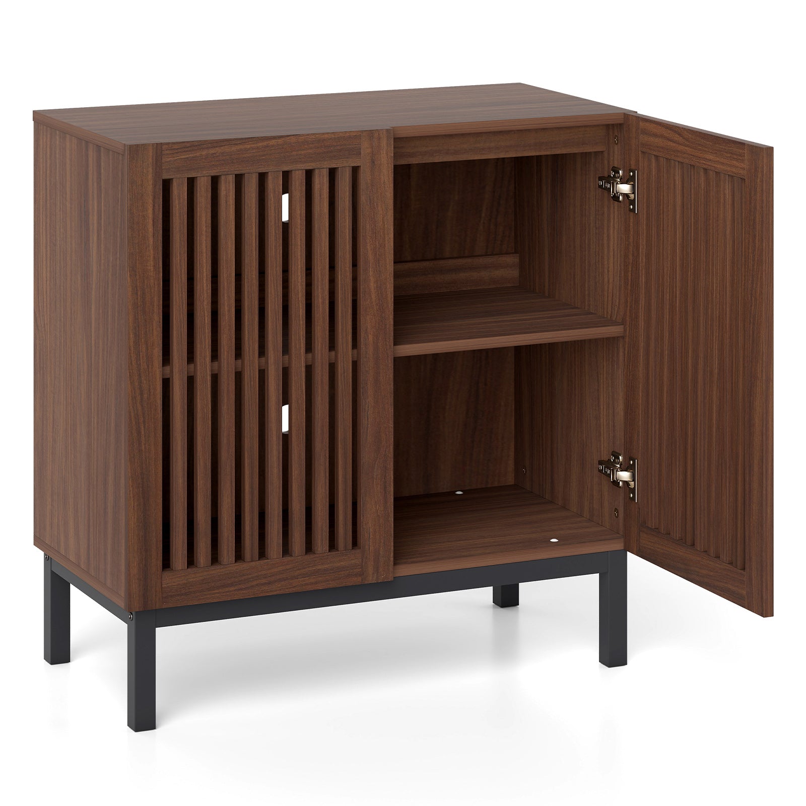 ● Adjustable & Removable Shelf: Equipped with a removable and 3-position adjustable shelf the 2-door sideboard cabinet can accommodate items of varying heights from tall vases to compact accessories. With a slot adjustment interval of 1.3" customizing the interior space becomes effortless to match your storage needs.