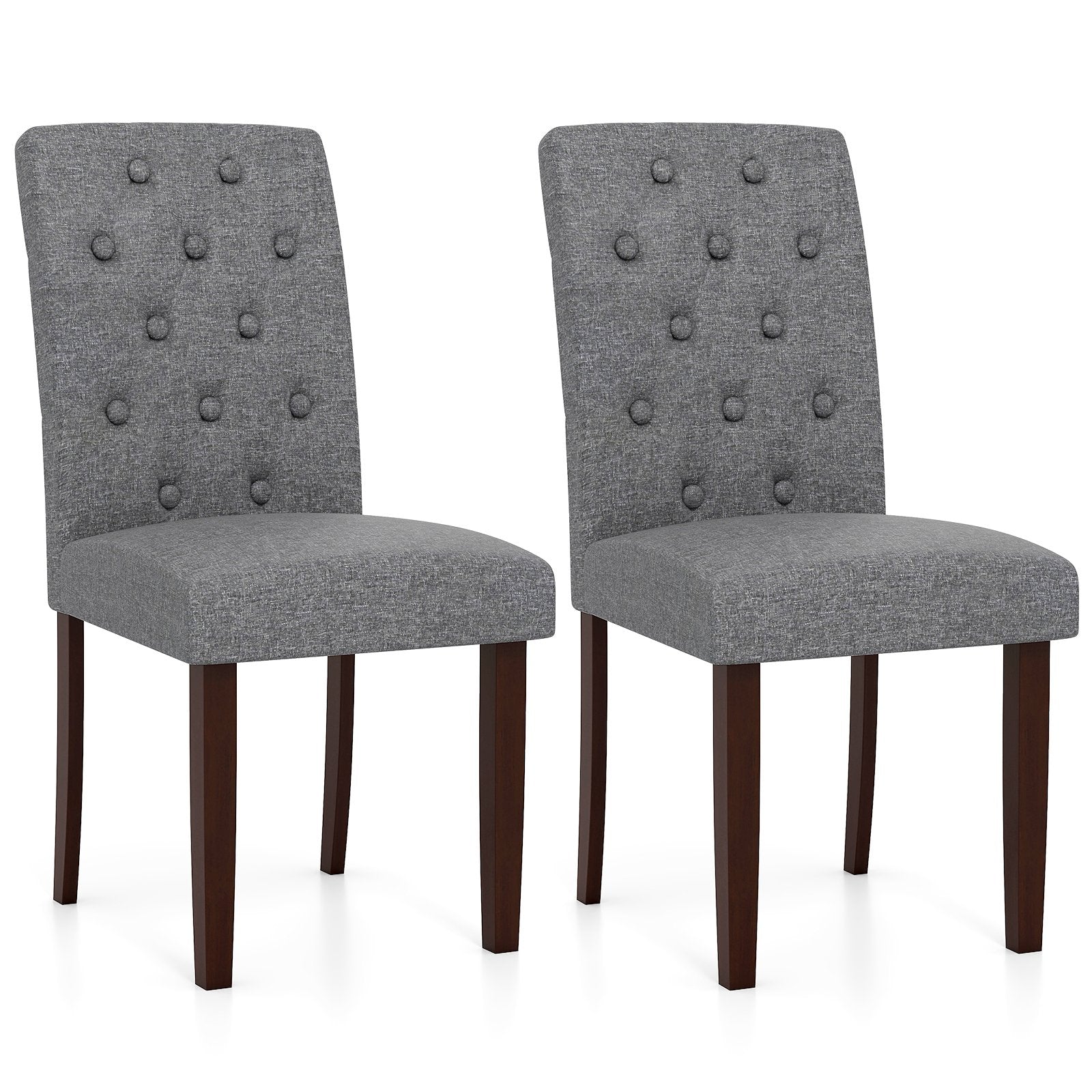 ● Modern Gray Elegance: These modern and sleek dining chairs are elegantly upholstered in a sophisticated gray fabric providing a neutral backdrop that blends beautifully with a variety of home decoration themes. The refined look is enhanced by a button tufted design adding an elegant and sophisticated touch.