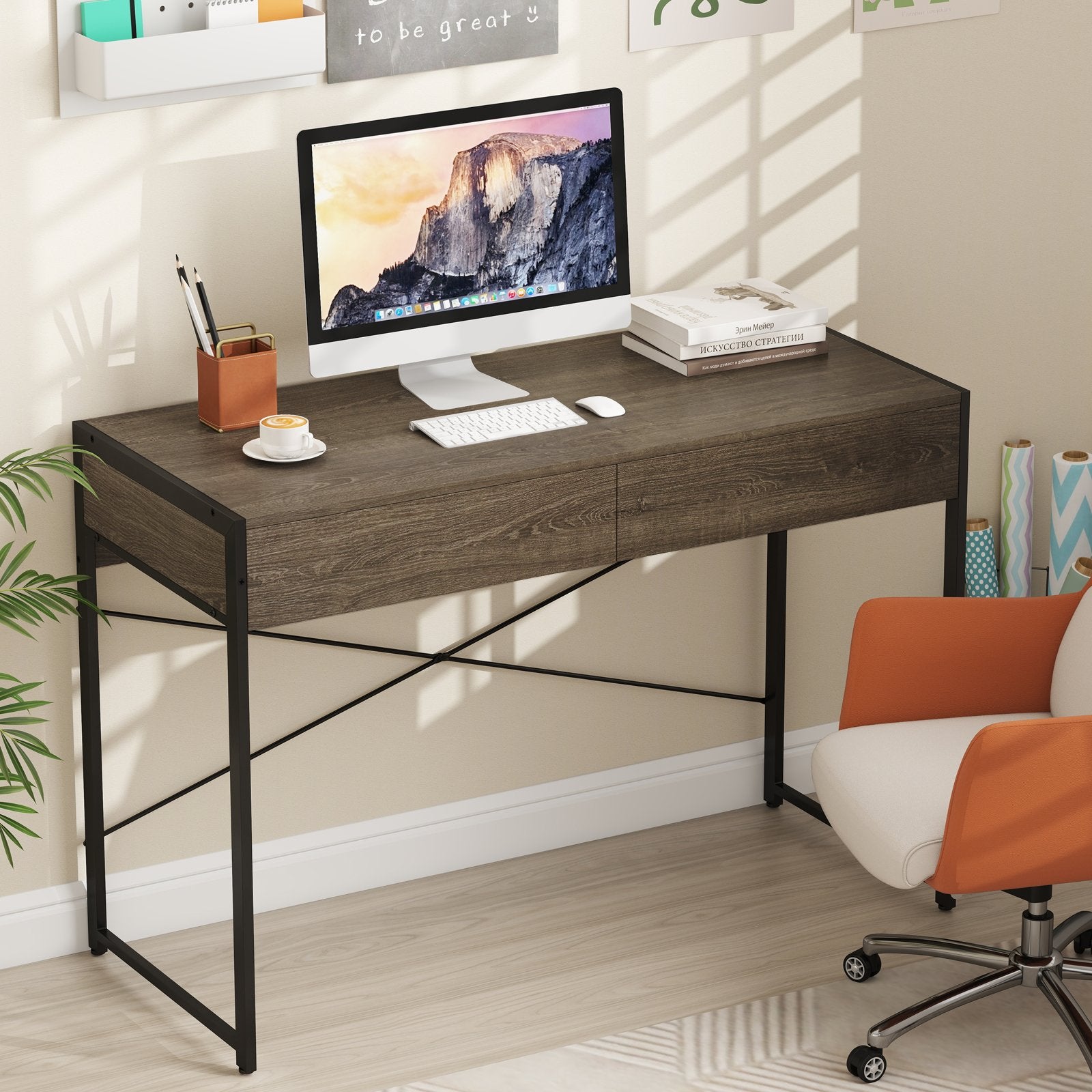 ● 2-Drawer Computer Desk: The laptop desk features 2 drawers that provide ample space to organize your office supplies and keep your workspace clutter-free. The tabletop is spacious enough to hold your computer books stationery lamps cups and decorations.