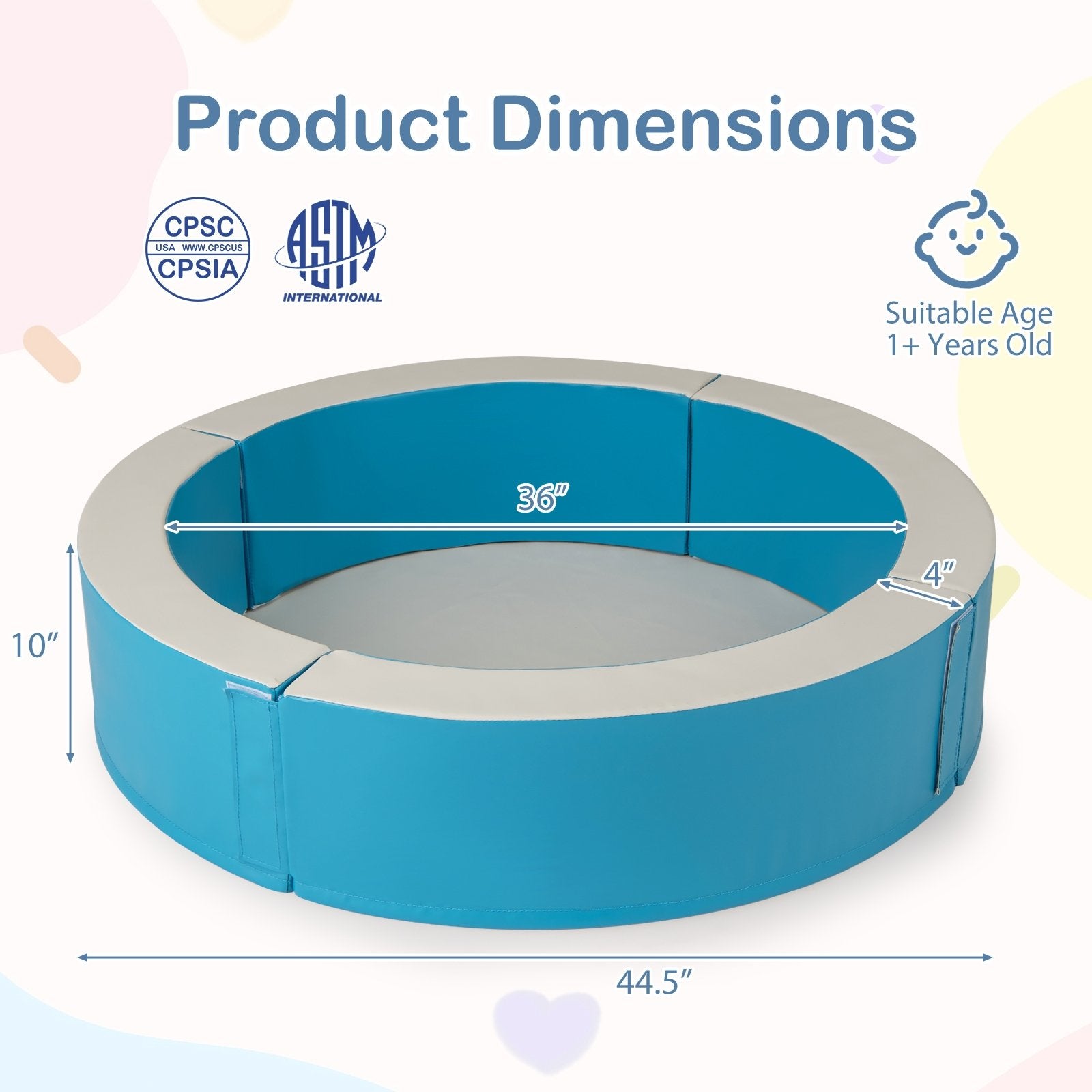 ● Spacious and Fun Activity Center: Measuring 44.5" x 44.5" x 10" (L x W x H) the round baby ball pit provides ample space for ocean balls and toys to keep your child entertained. The ball pit is large enough to hold up to 2 kids. Plus it can also be combined with a slide (not included) for additional fun.