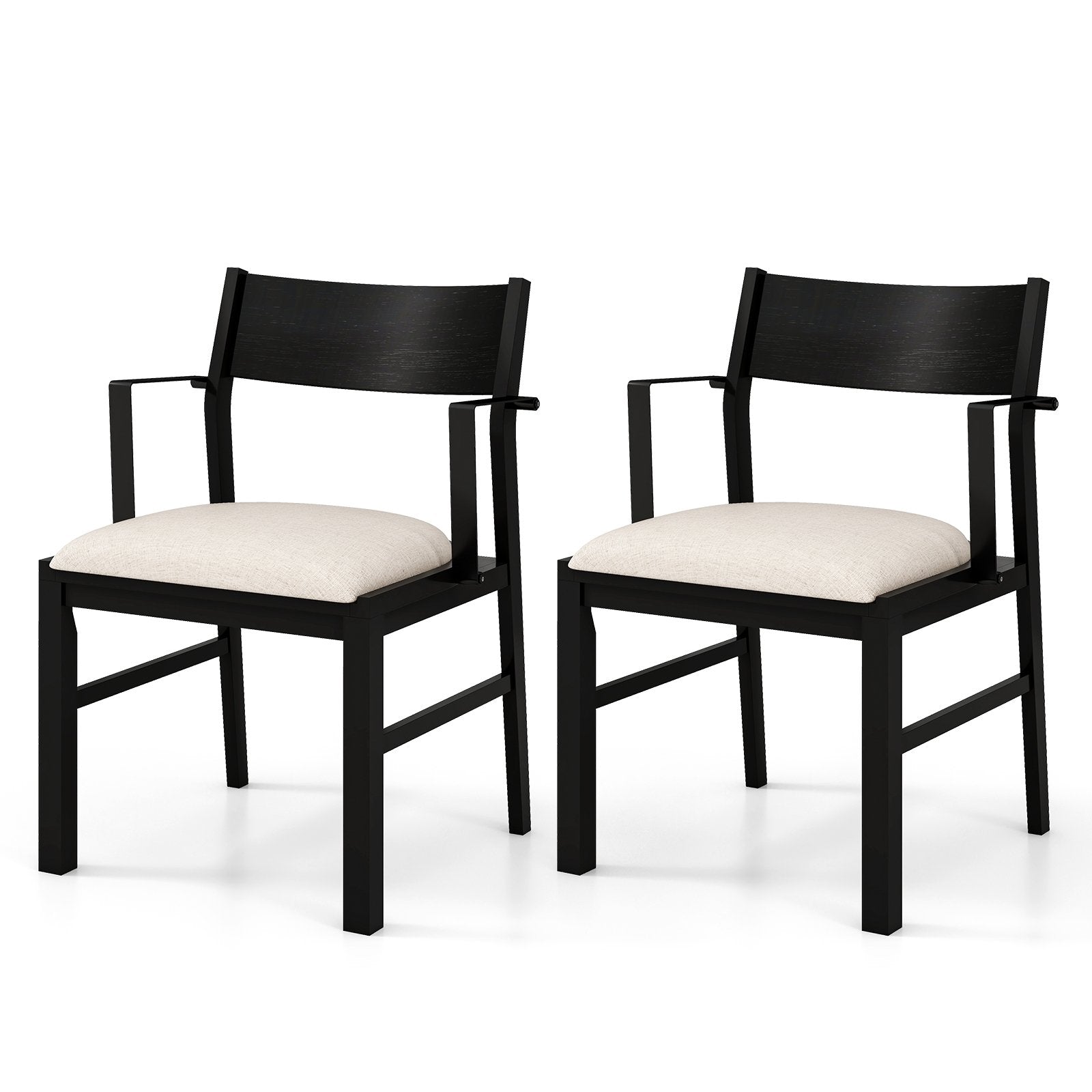 Dining Chair with Contoured Backrest and Padded Seat Set of 2-Beige