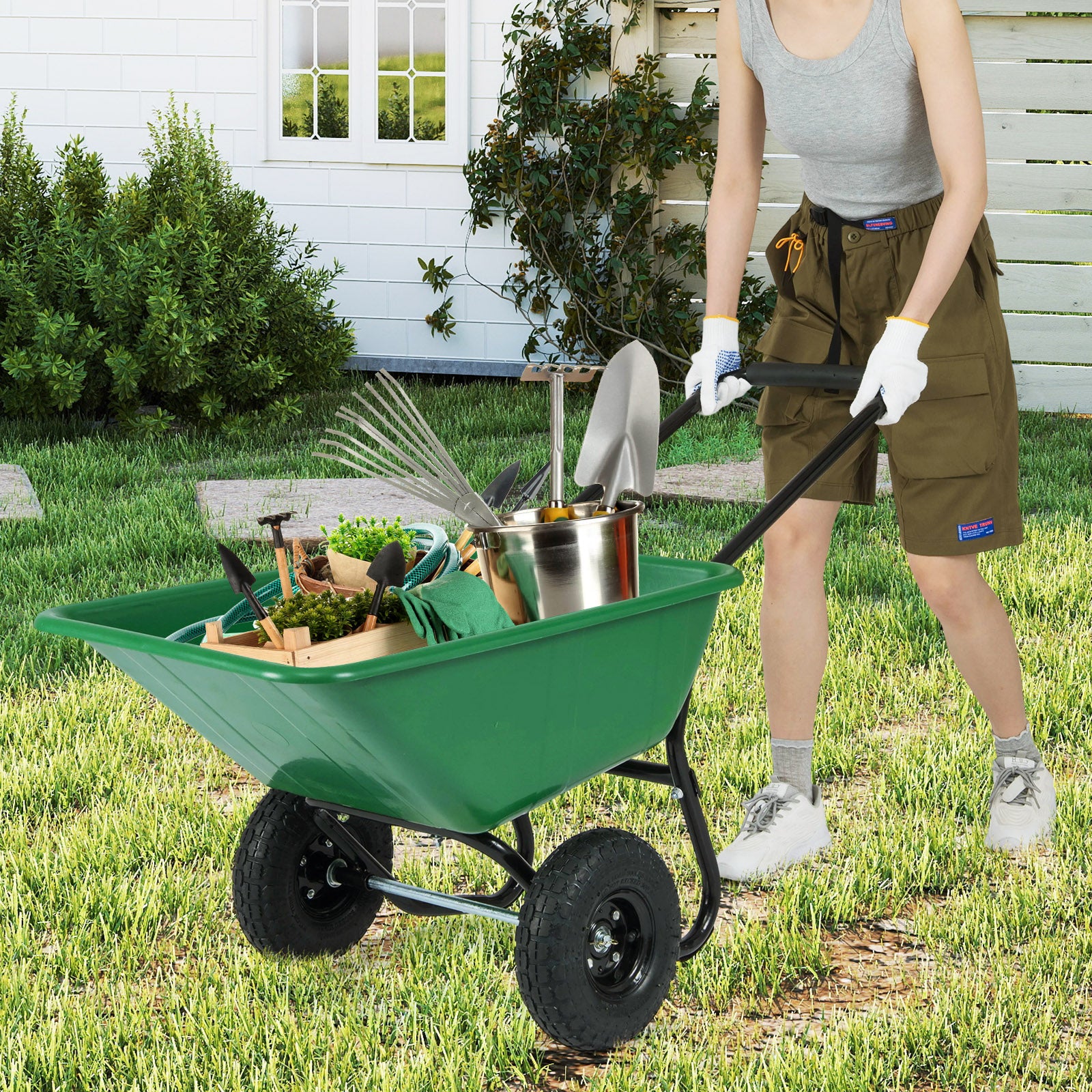 Dual-Wheel Wheelbarrow Garden Utility Cart with Pneumatic Tires-Black Color